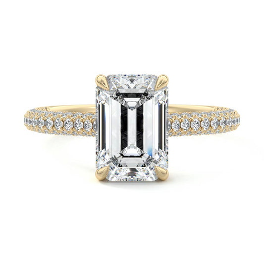 Hidden Halo & Triple Pave Ring with 1.20 CT Emerald Cut Moissanite