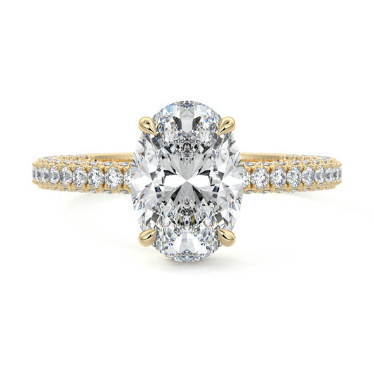 Hidden Halo & Triple Pave Ring with 1.50 CT Oval Cut Moissanite