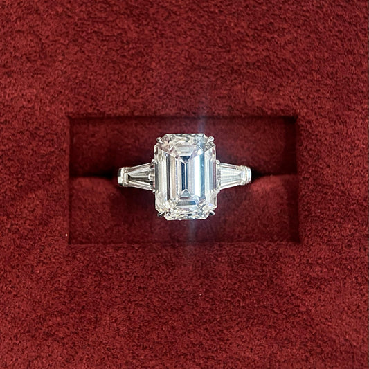 2.0-5.0 CT Emerald CVD Diamond Three Stone Setting Engagement Ring