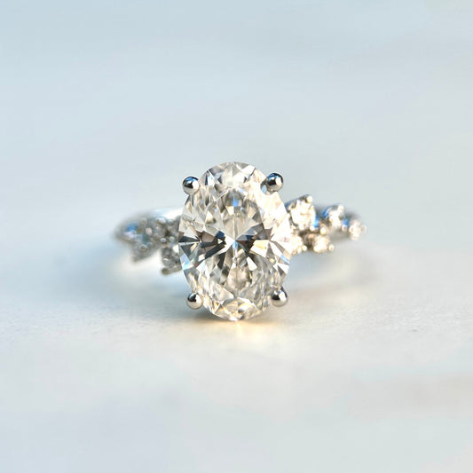 1.0-3.0 CT Oval CVD Diamond Cluster Engagement Ring