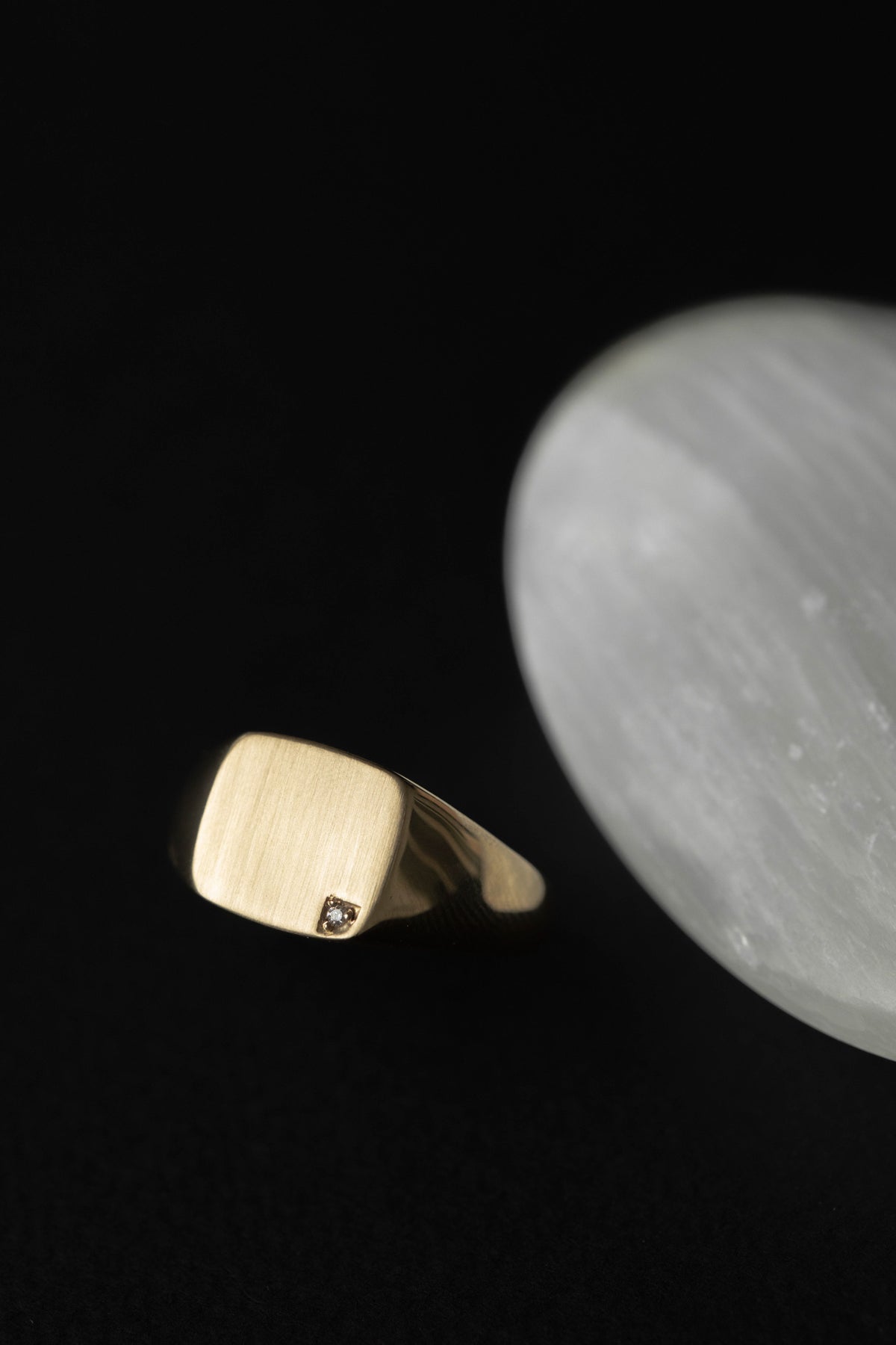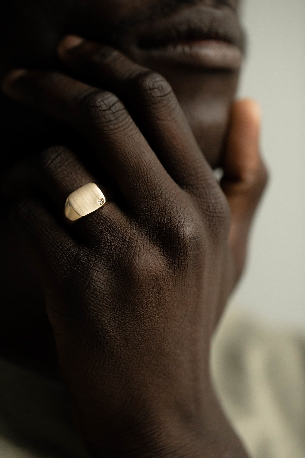 0.009 TCW Round Cut Signet Rings Wedding Band For Men