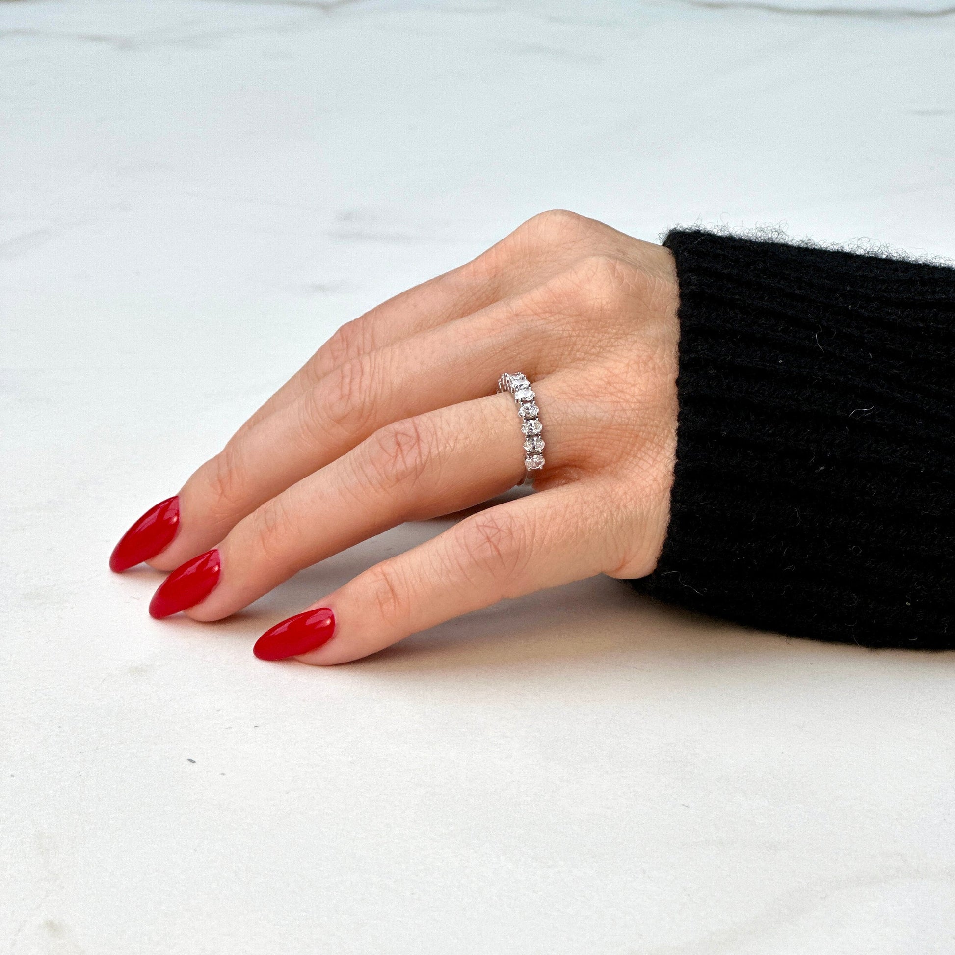 1.40 TCW Oval Lab Grown Diamond Half Eternity Wedding Band