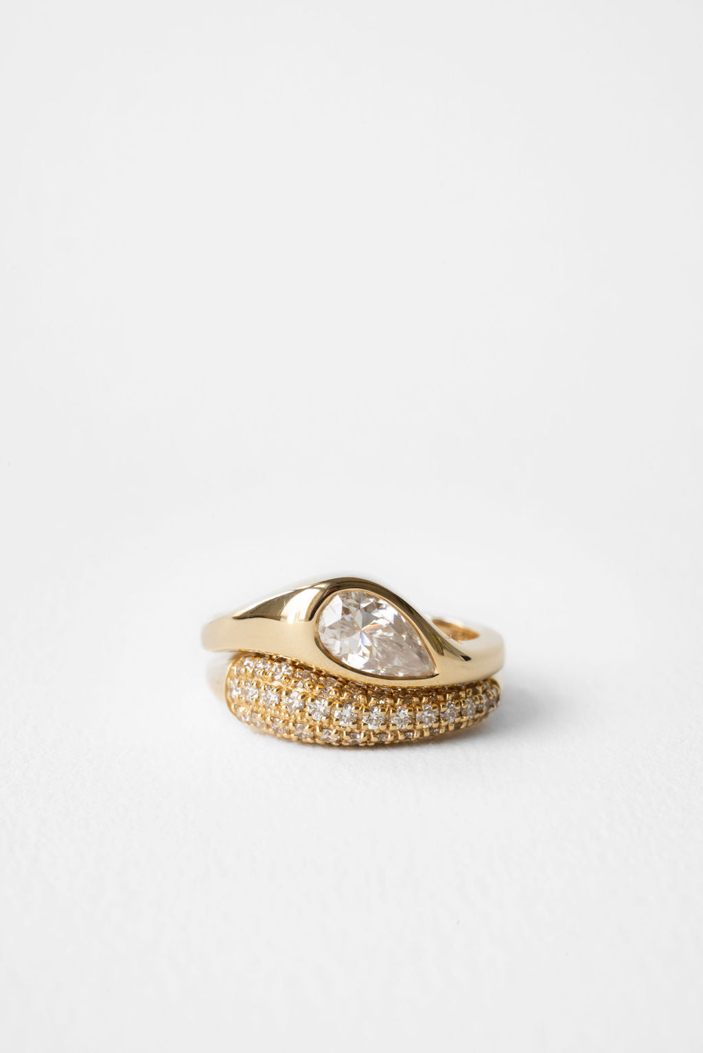 0.95 CT East west pear Shaped Moissanite Solitaire Bridal Ring Set