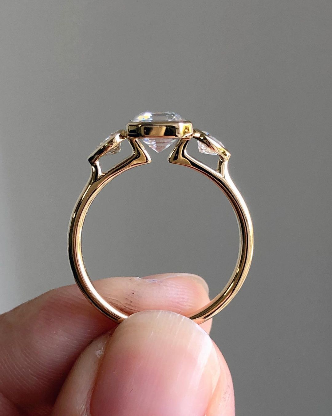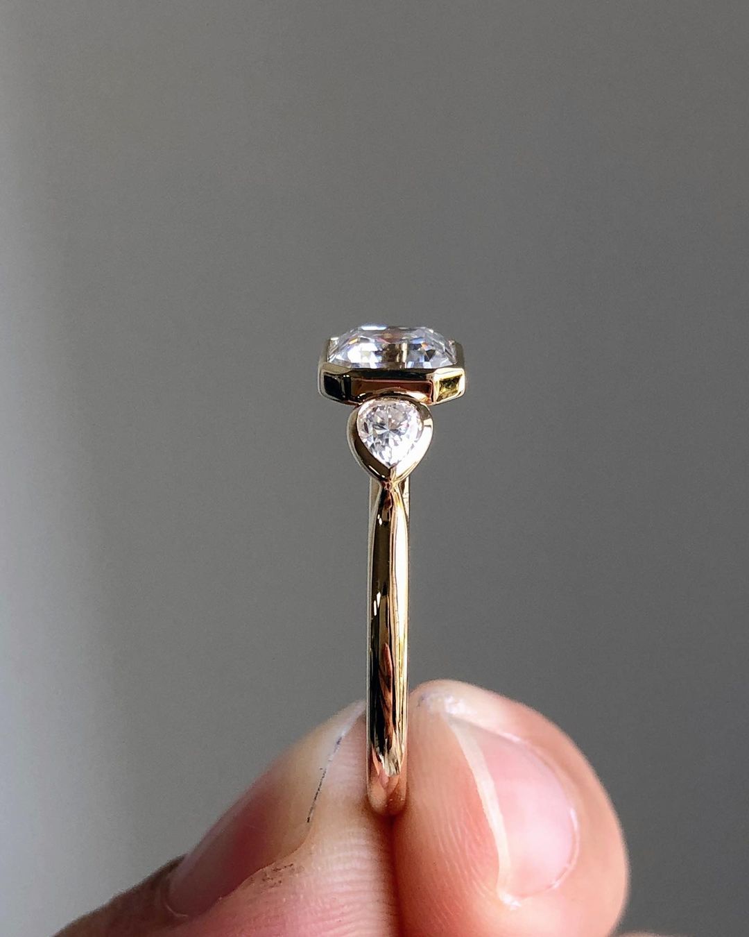 Bezel Three Stones Ring with 1.19 CT Asscher Cut Moissanite