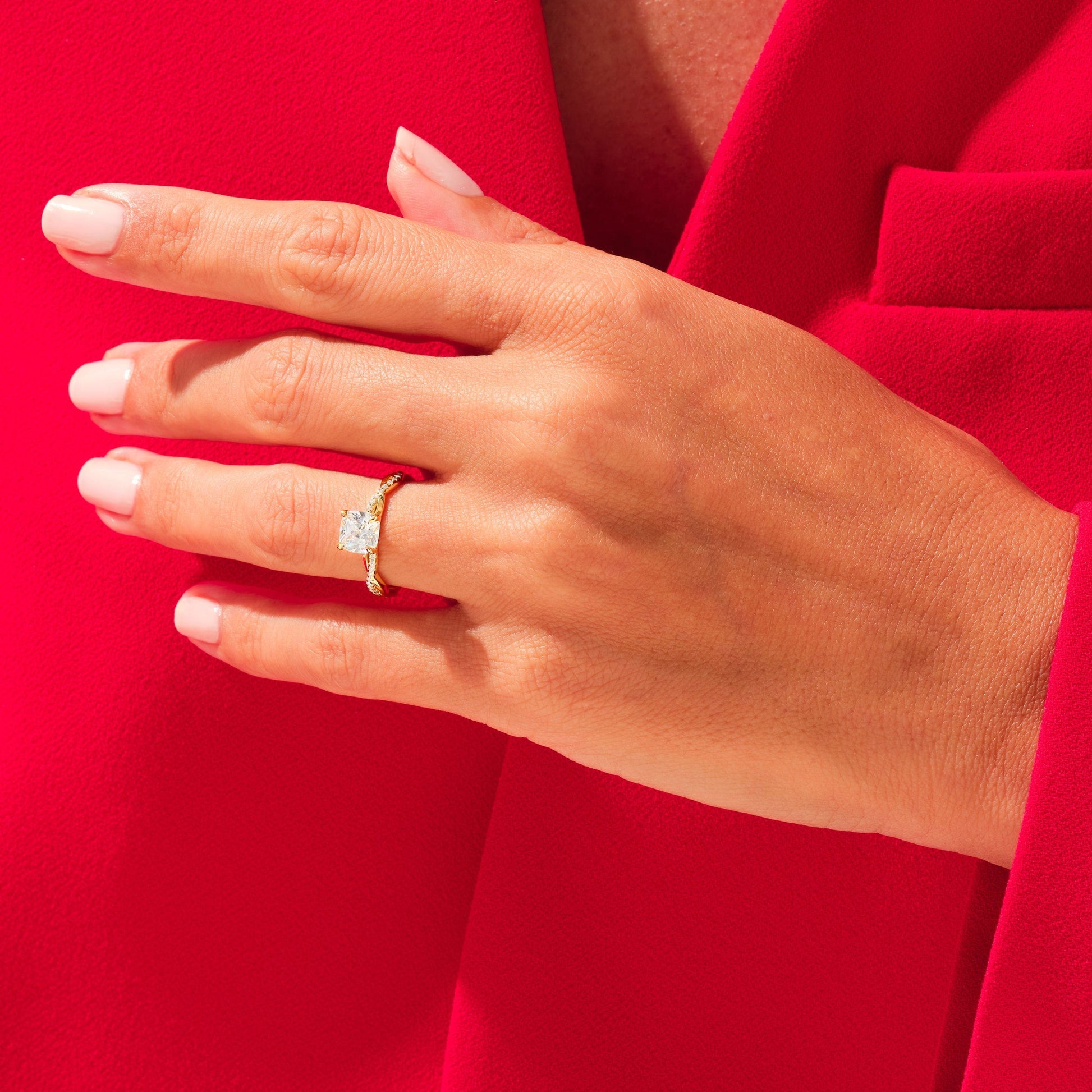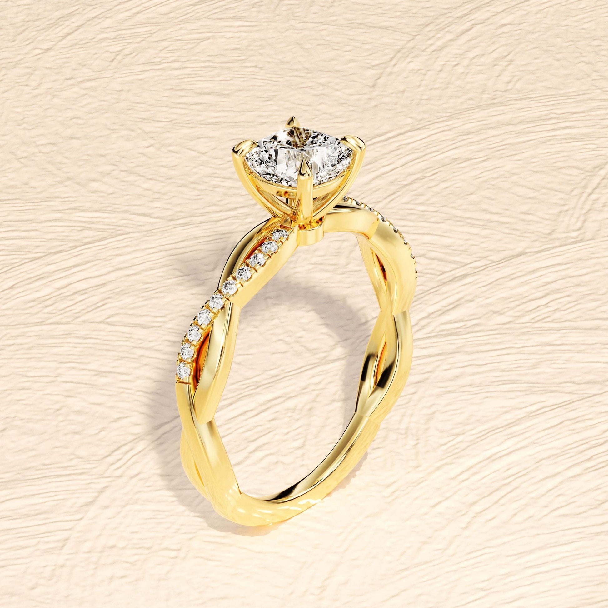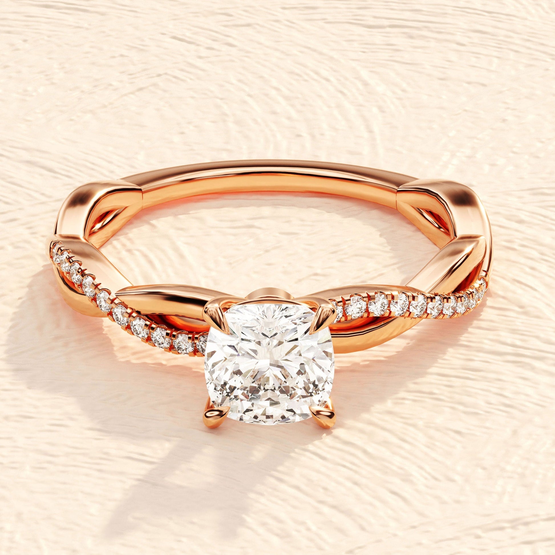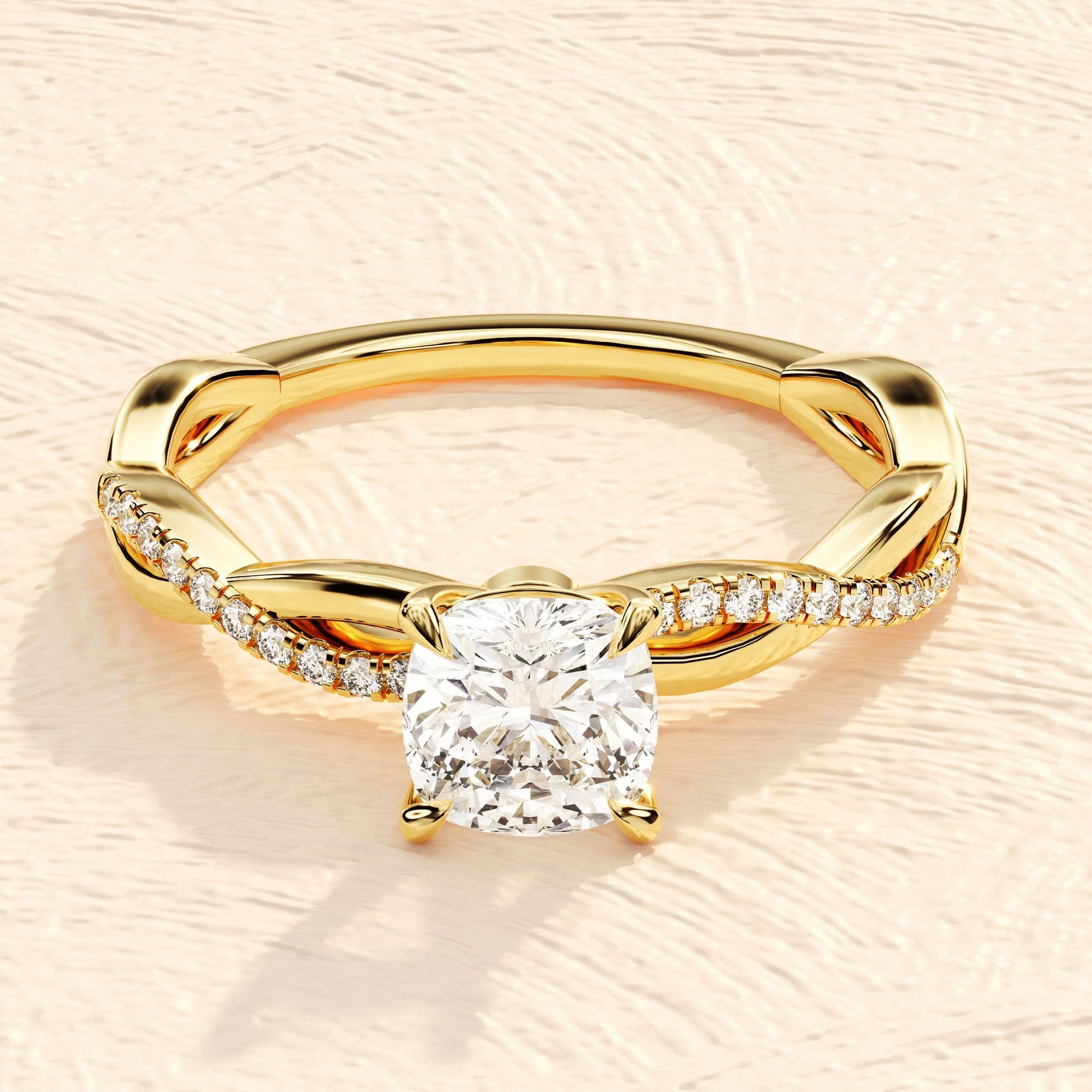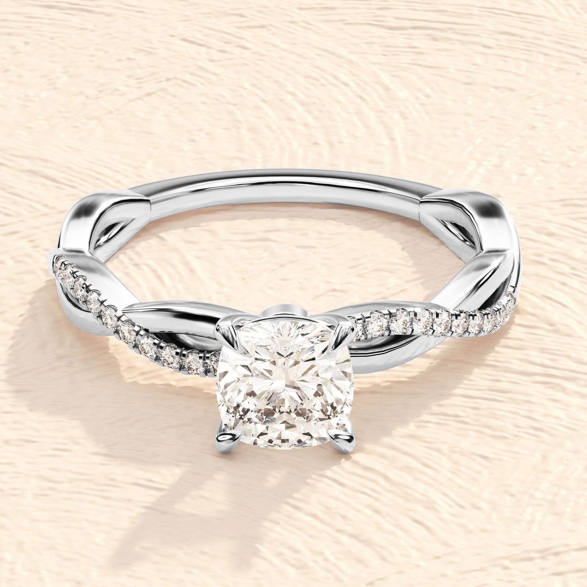 Cross Over Pave Ring with 2.0 CT Cushion Moissanite
