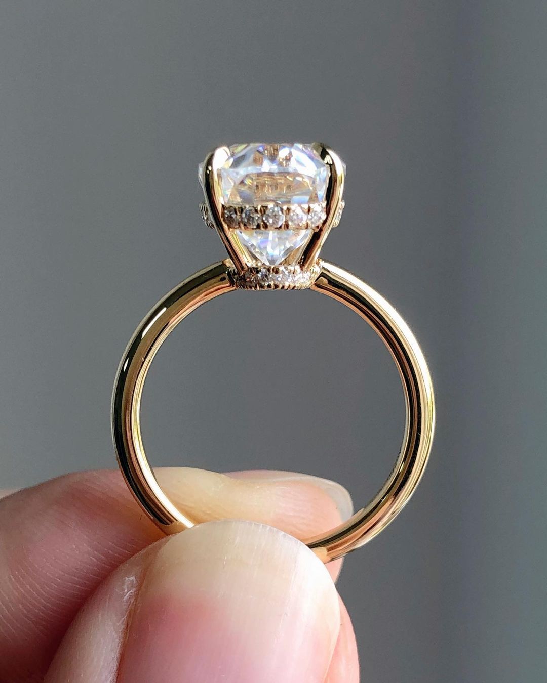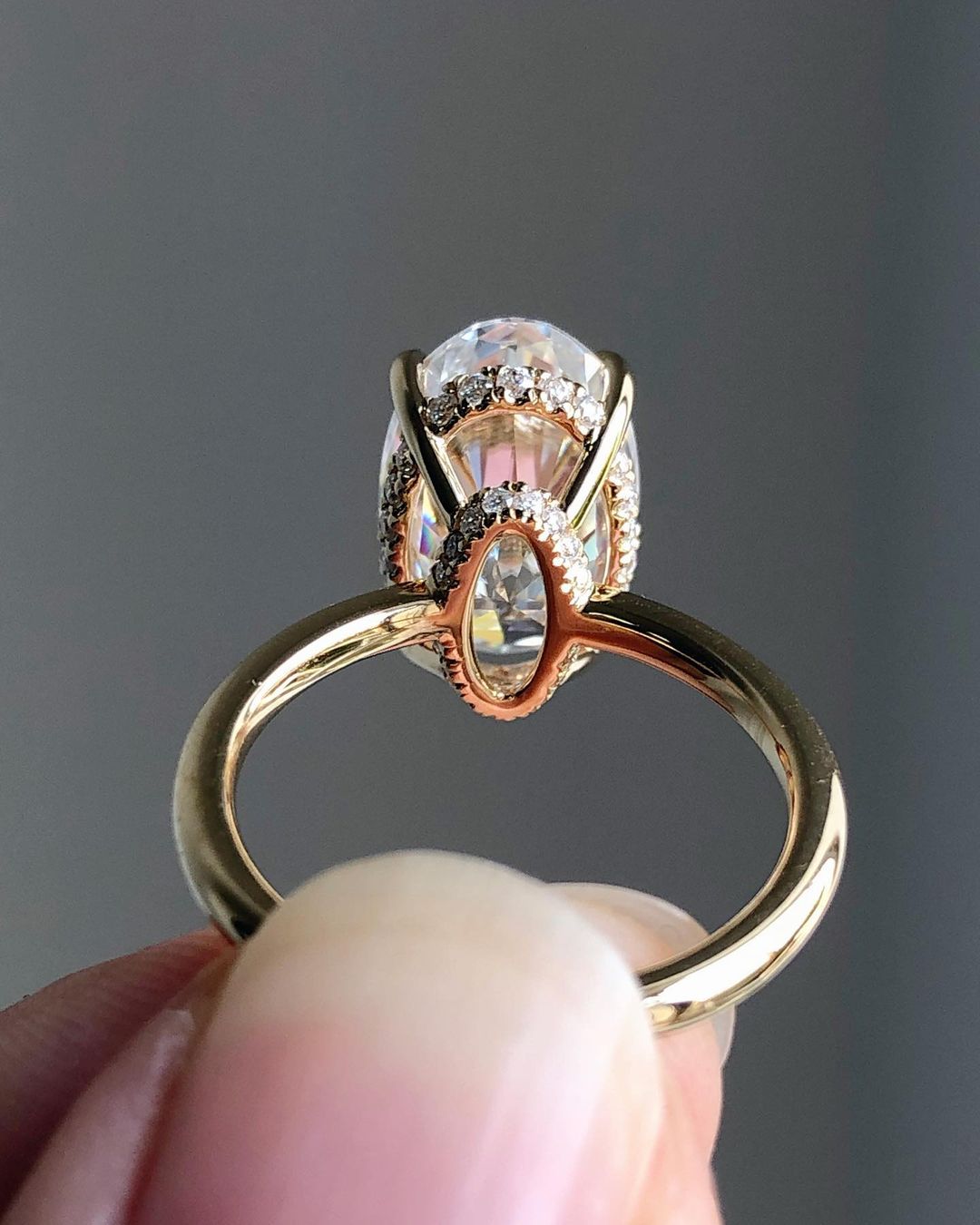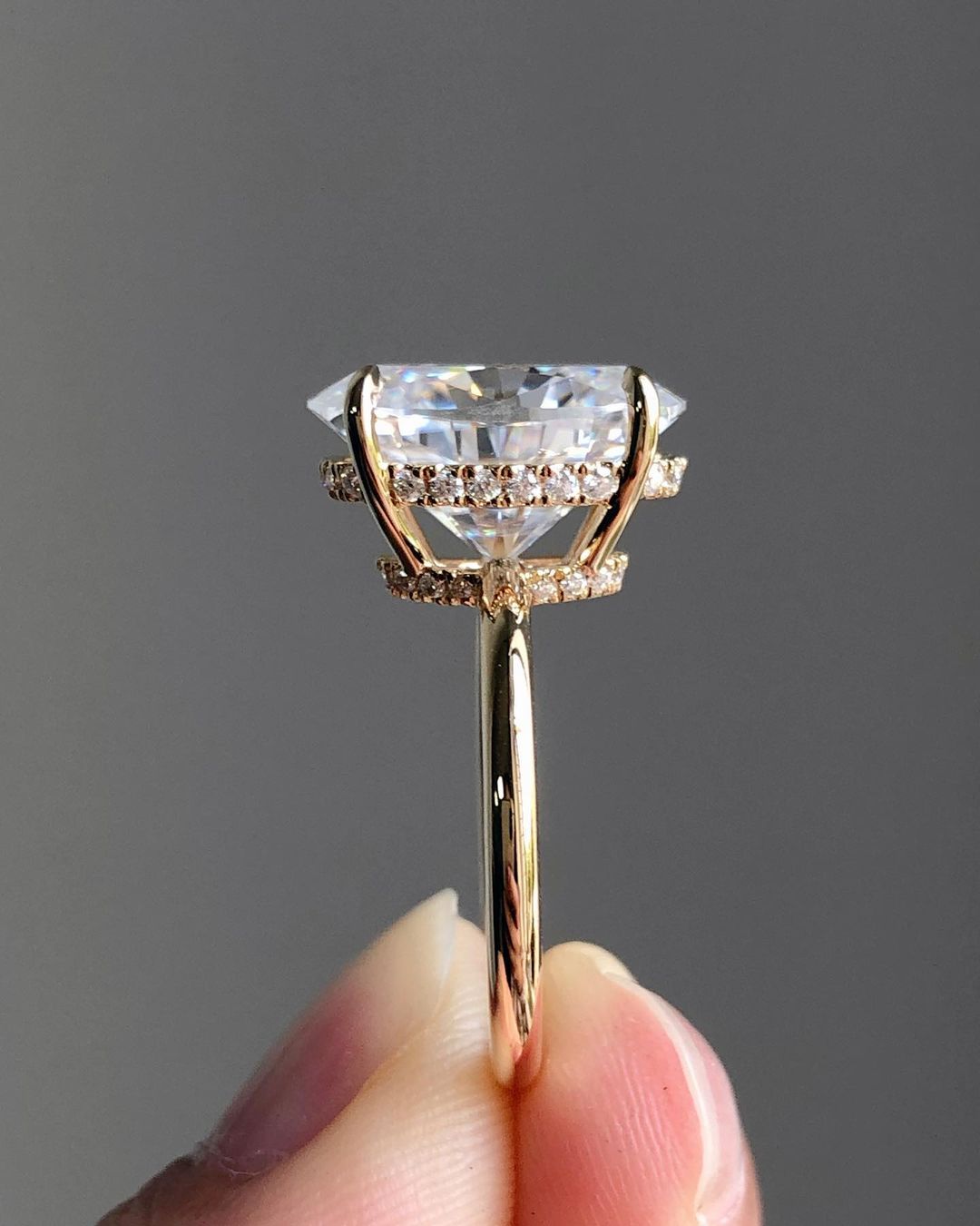 Double Hidden Halo Ring with 3.85 CT Oval Cut Moissanite