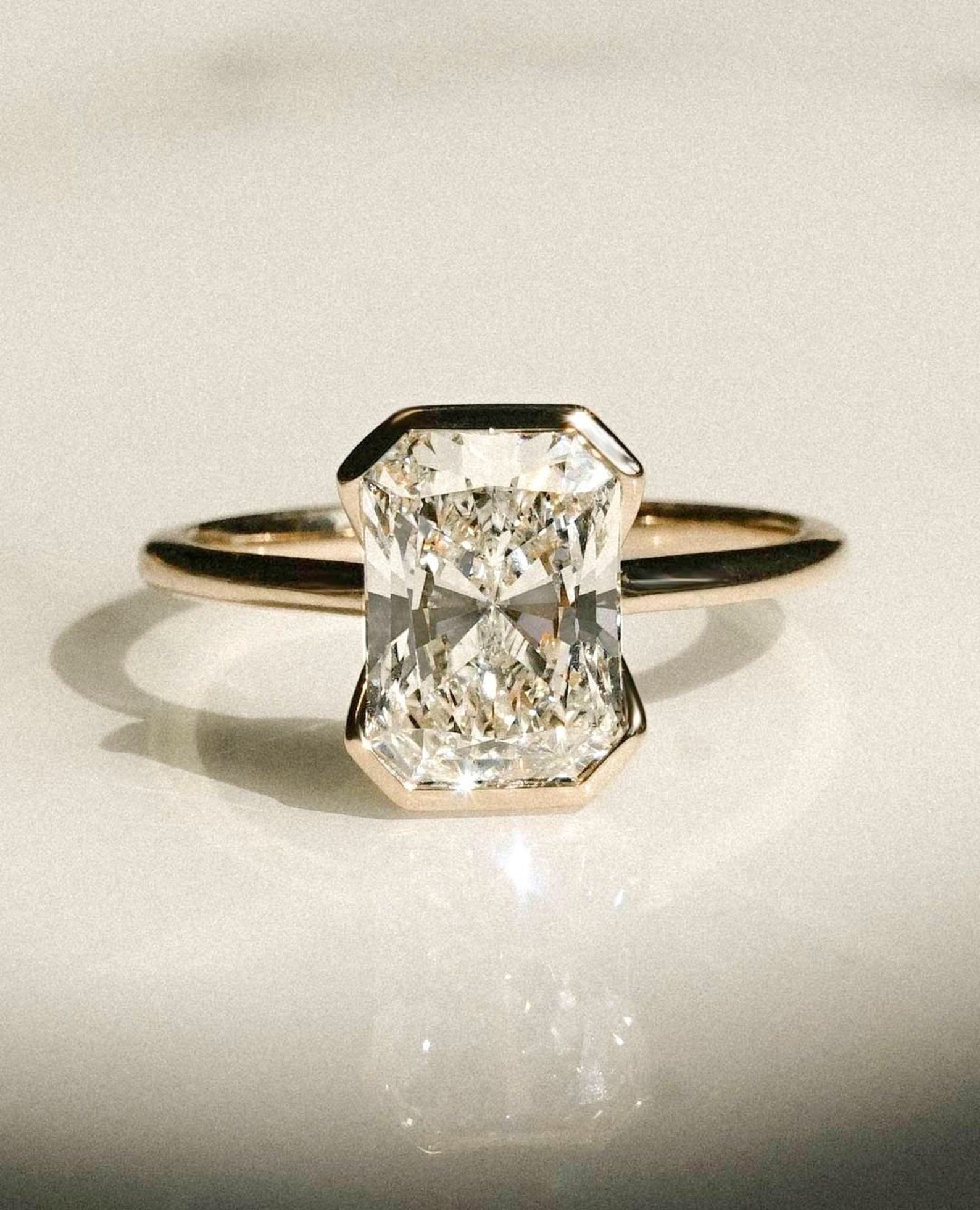Half Bezel Ring with 1.50 CT Radiant Cut Moissanite