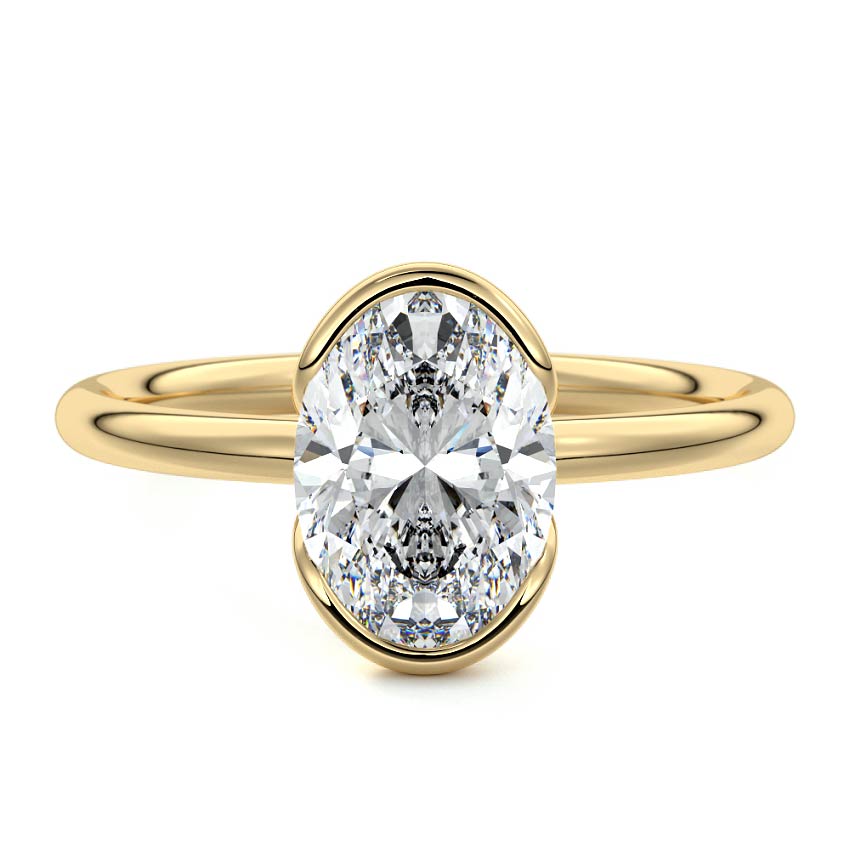 Half Bezel Solitaire Ring with 1.0 CT Oval Cut Moissanite