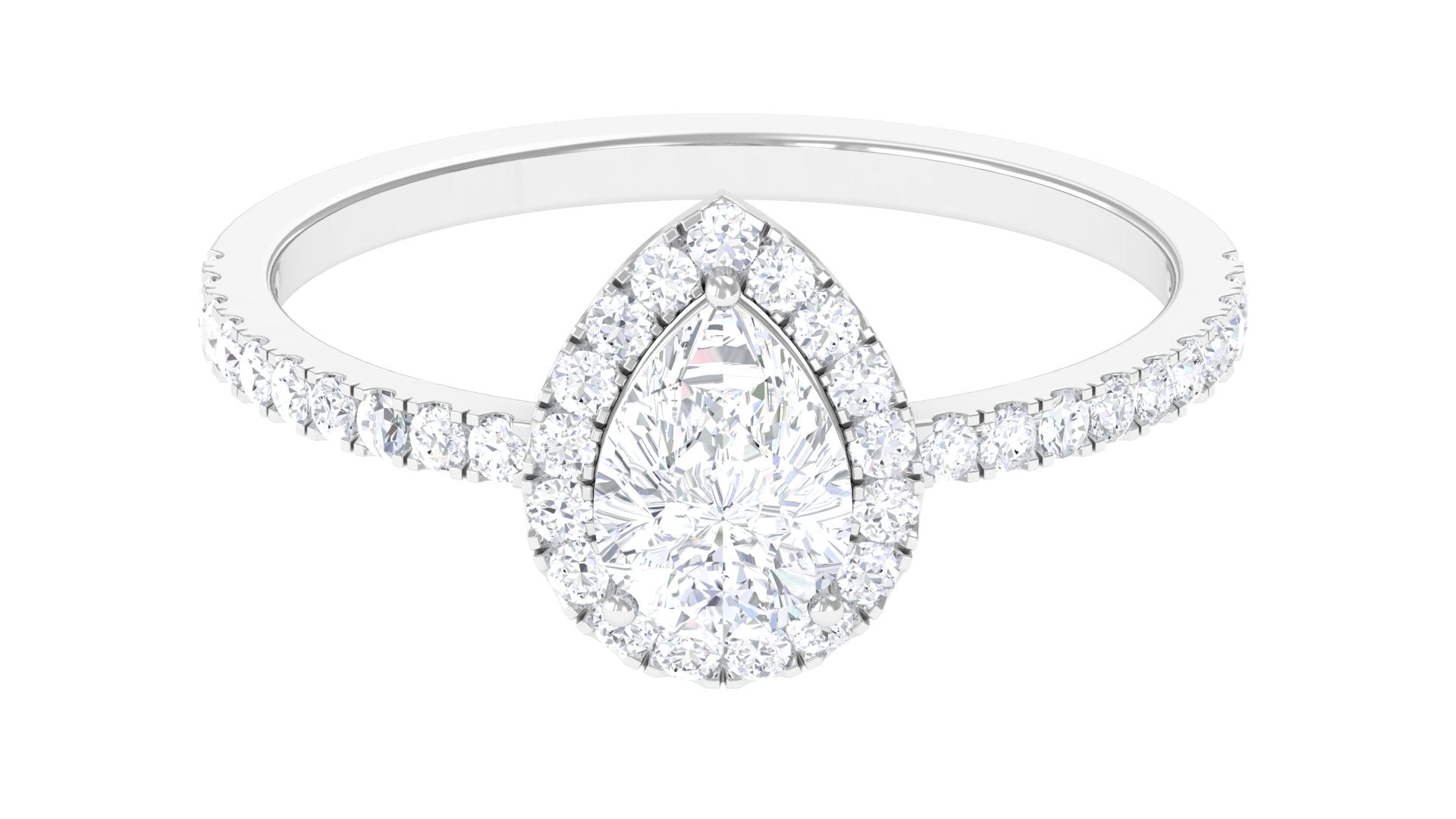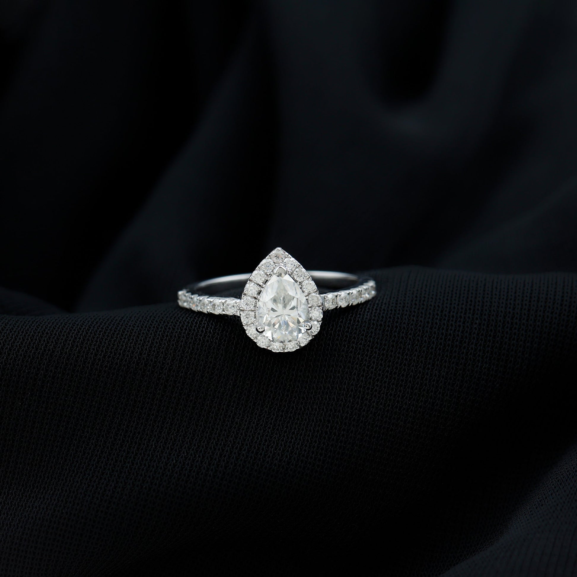 Halo & Pave Ring with 1.25 CT Pear Cut Moissanite