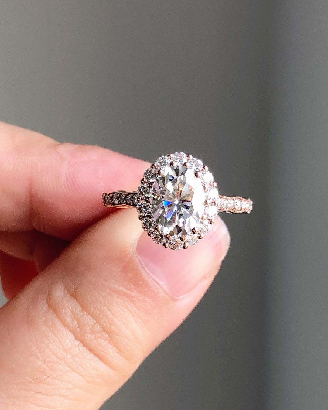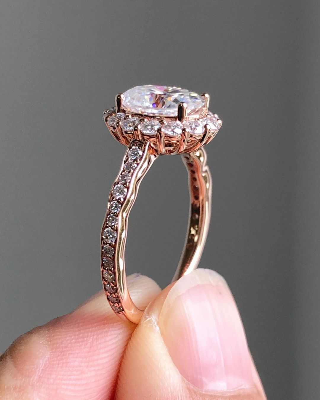 Halo & Pave Ring with 1.33 CT Oval Cut Moissanite