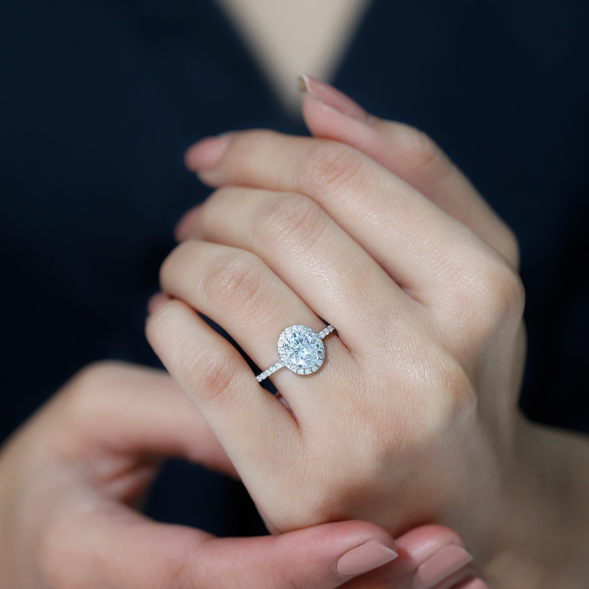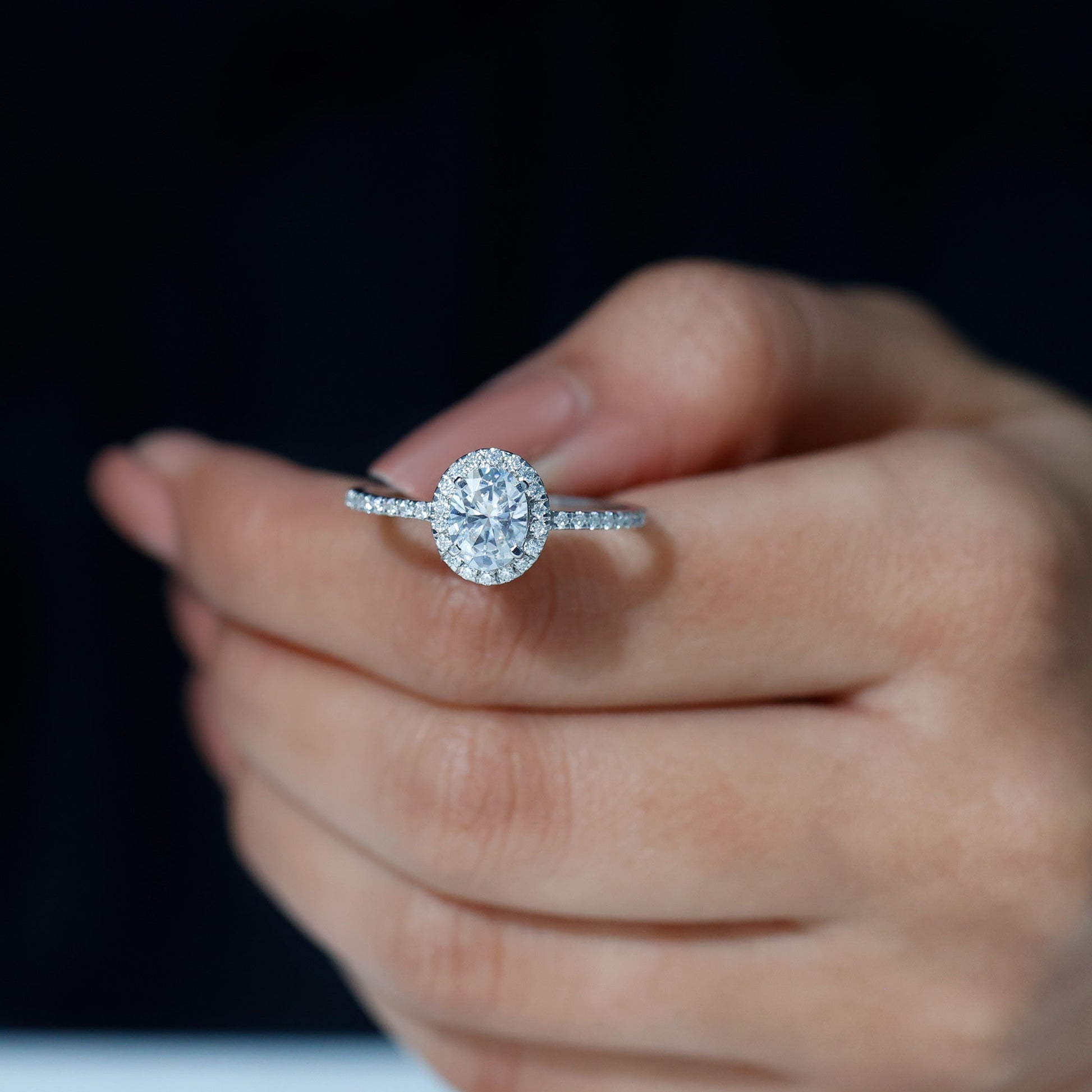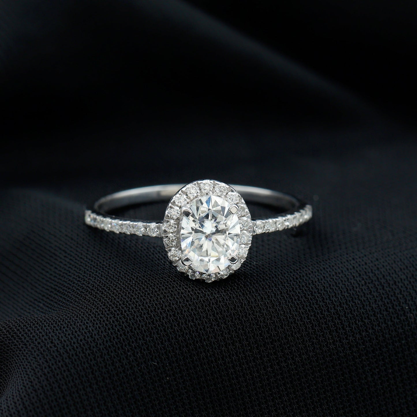 Halo Ring with 1.20 CT Oval Cut Moissanite
