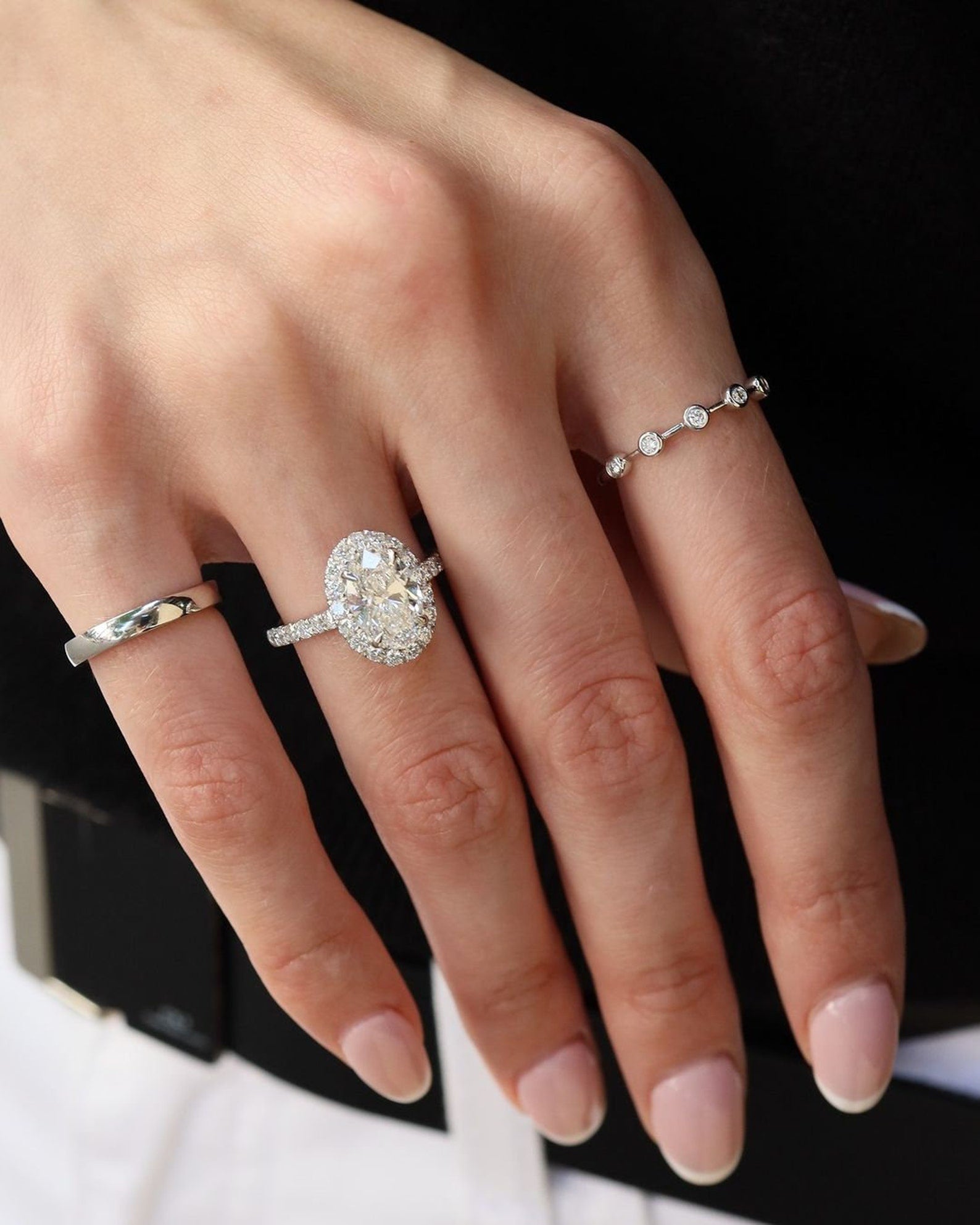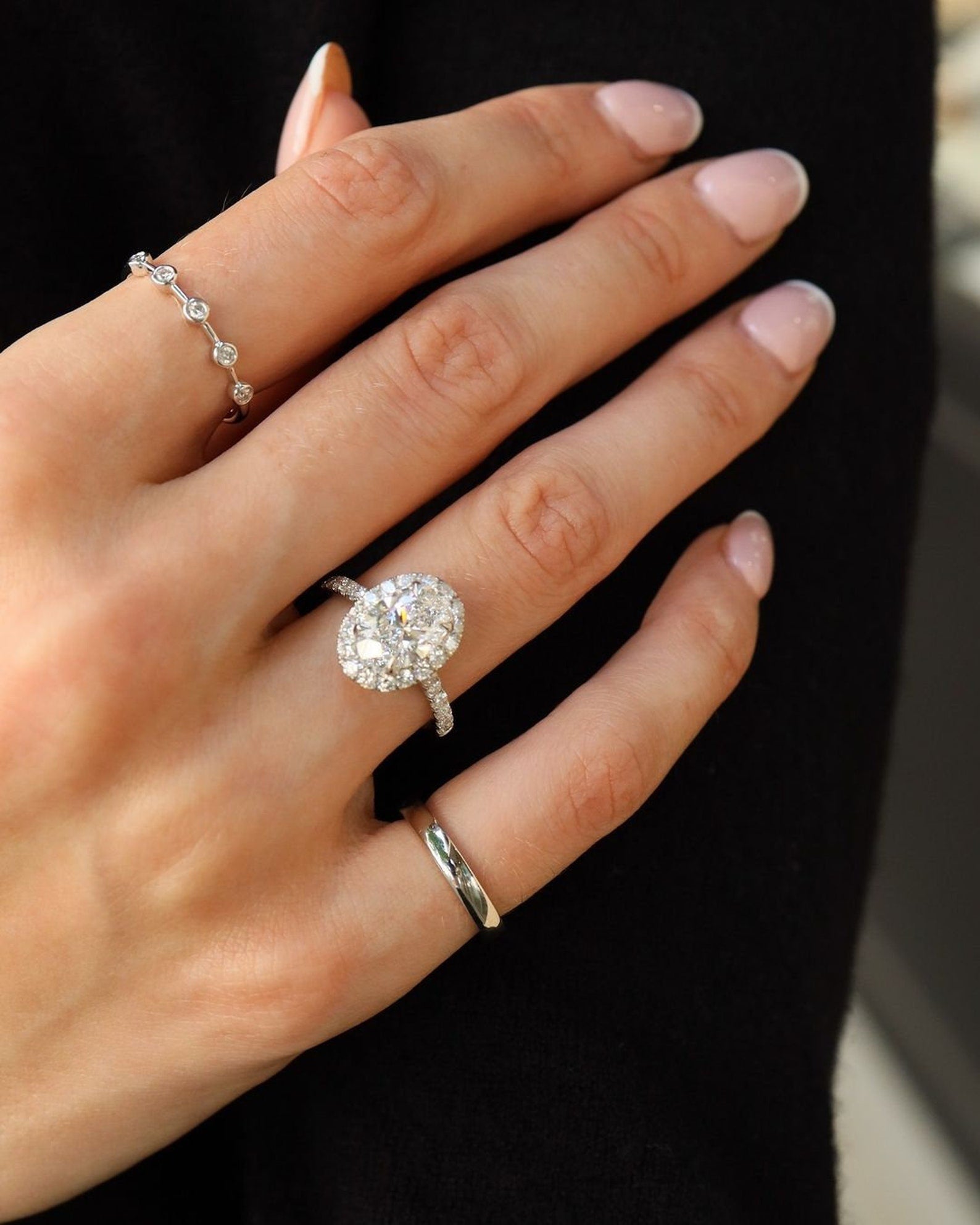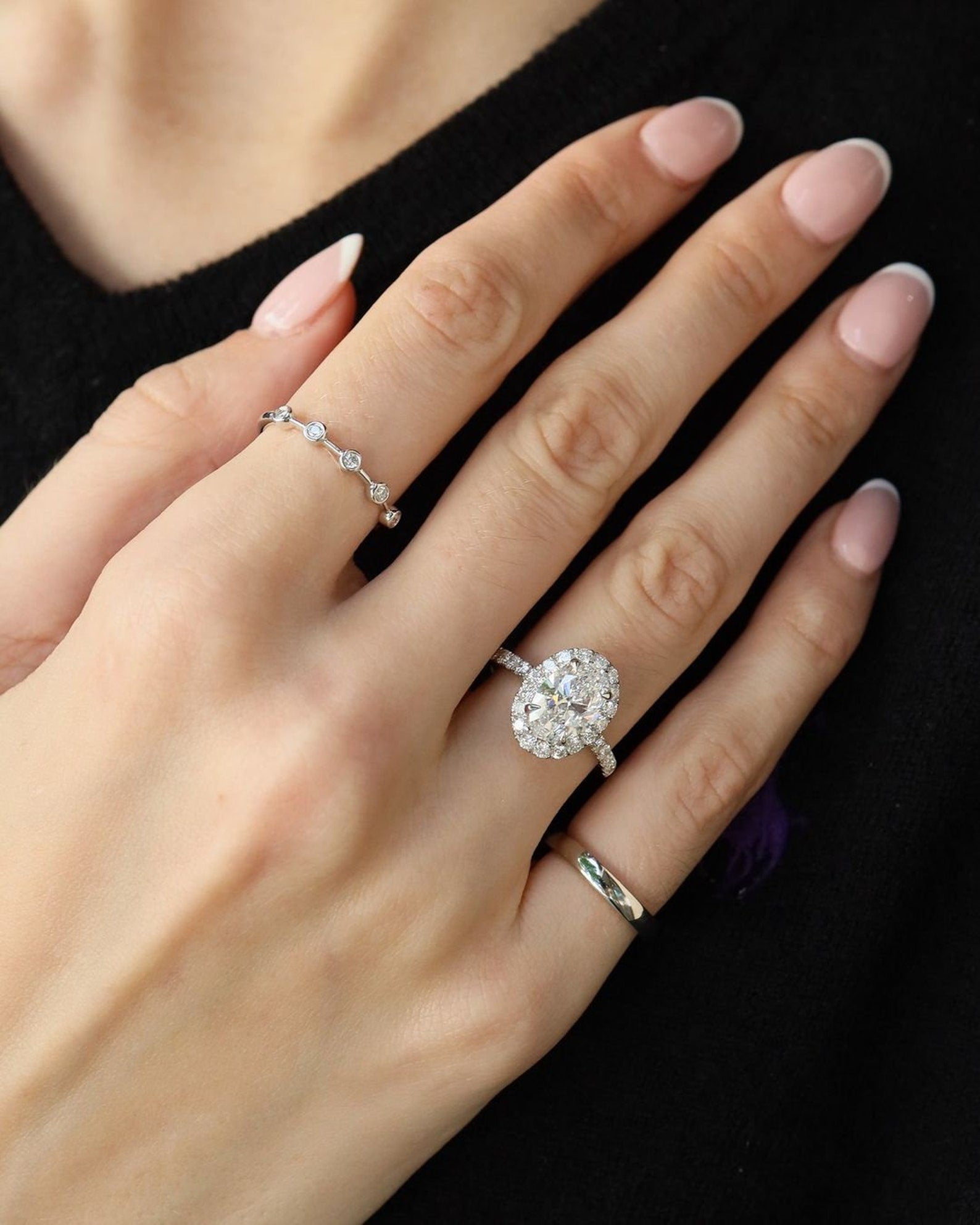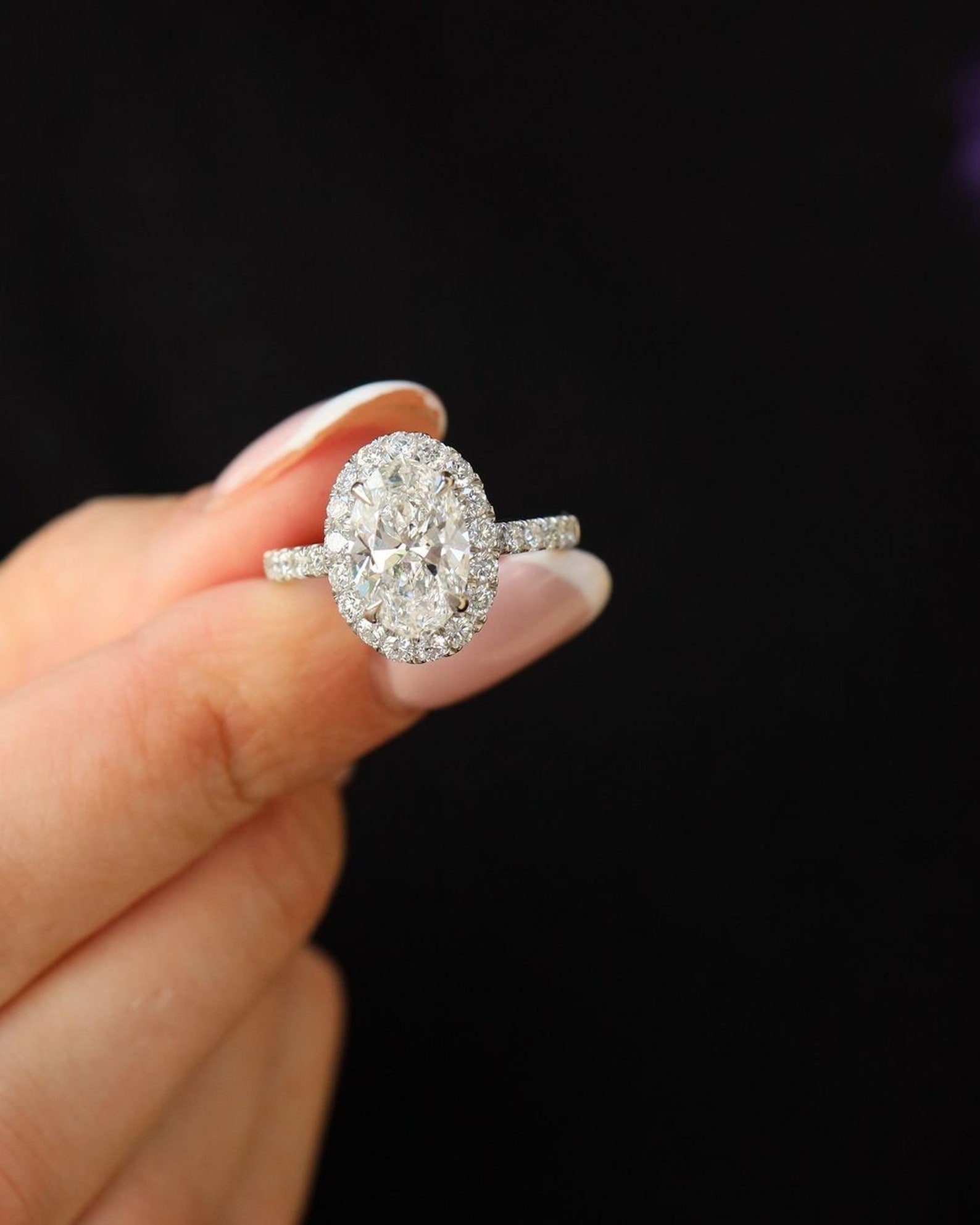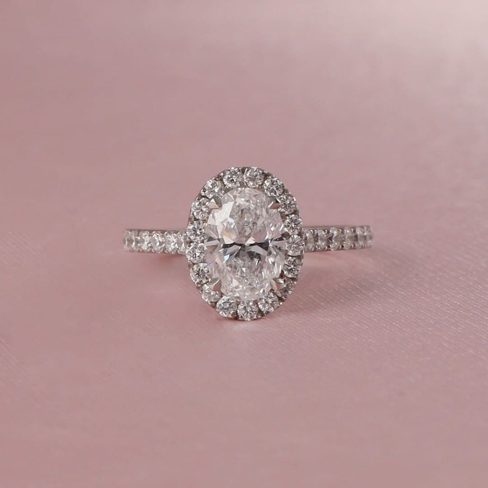 Halo Ring with 1.50 CT Oval Cut Moissanite