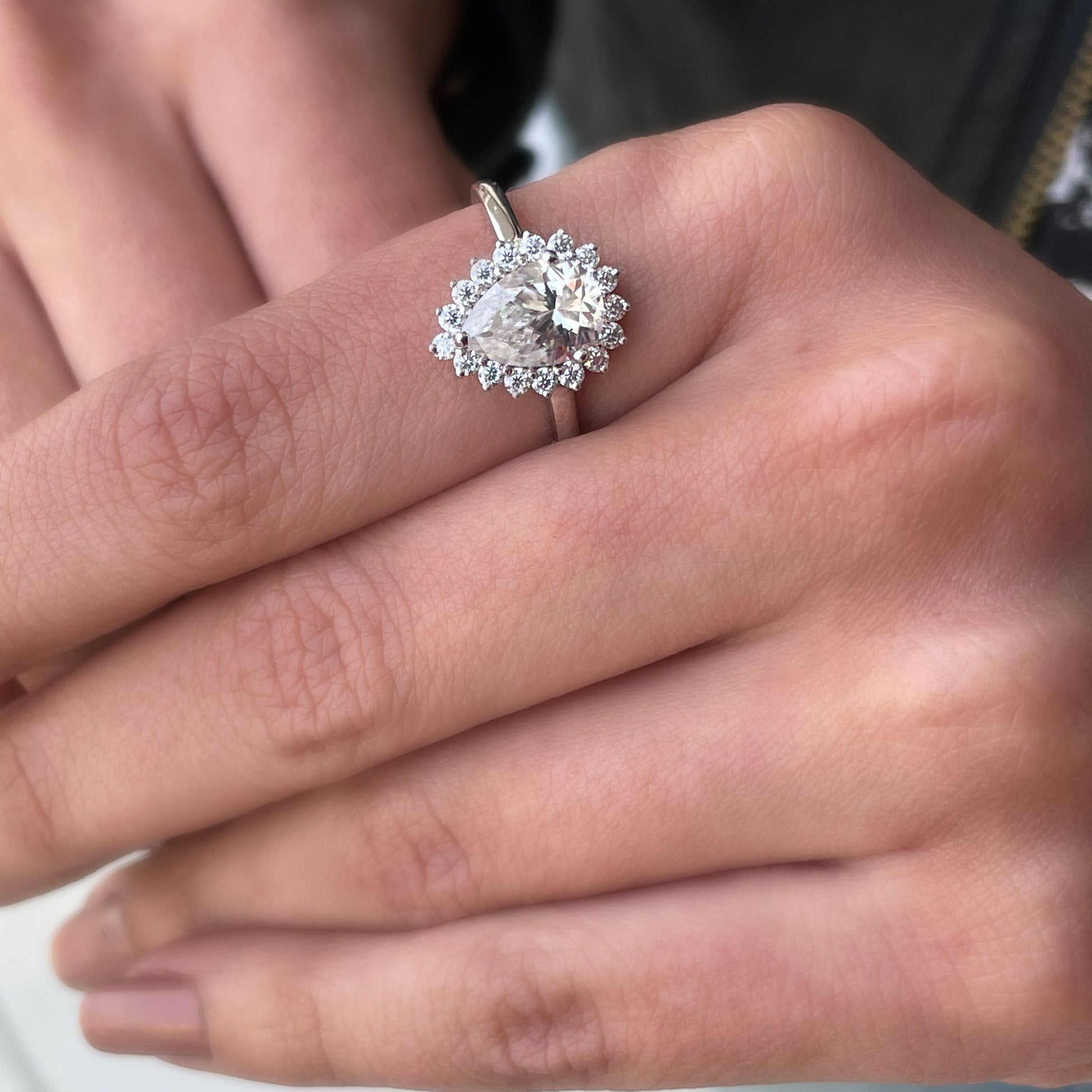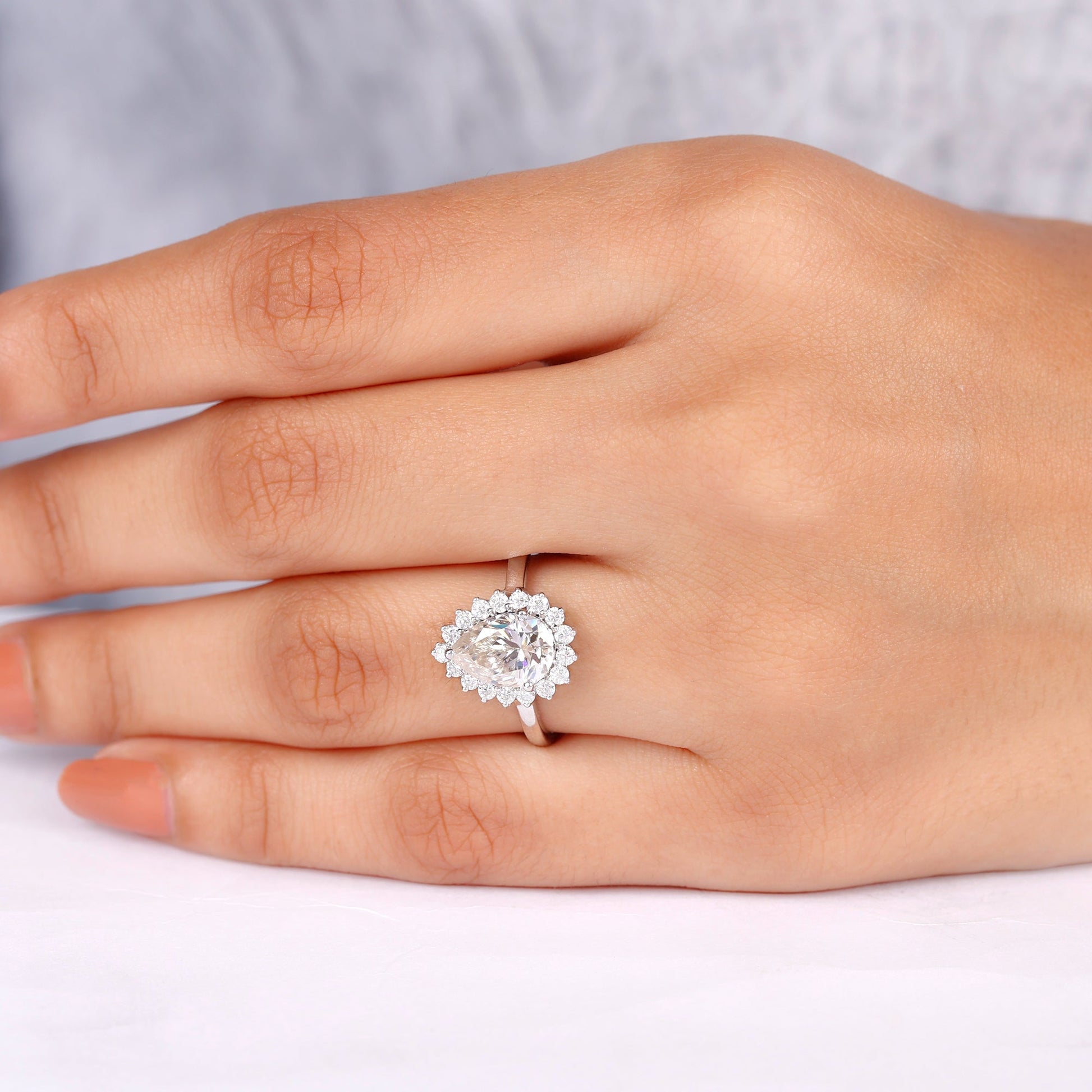 Halo Ring with 2.50 CT Pear Cut Moissanite