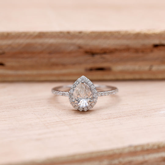 Halo with 1.0 CT Pear Cut Moissanite