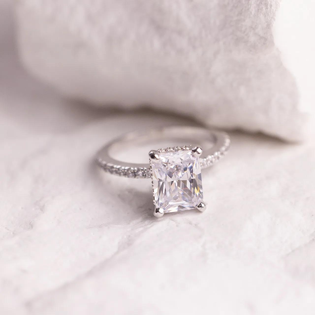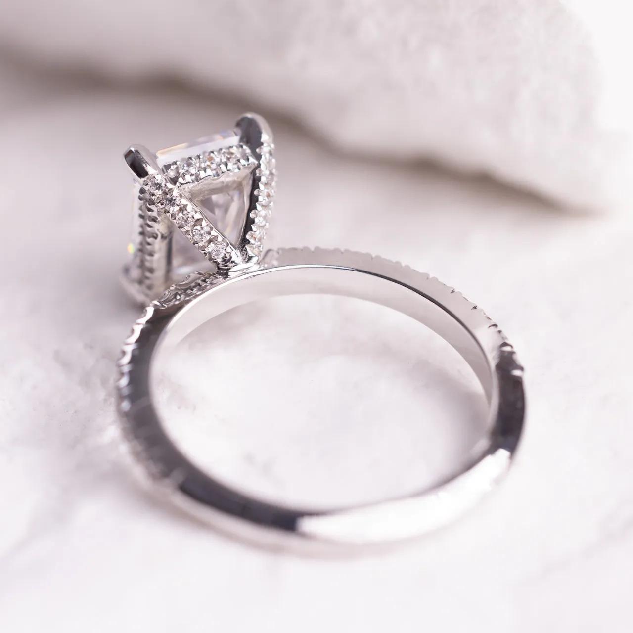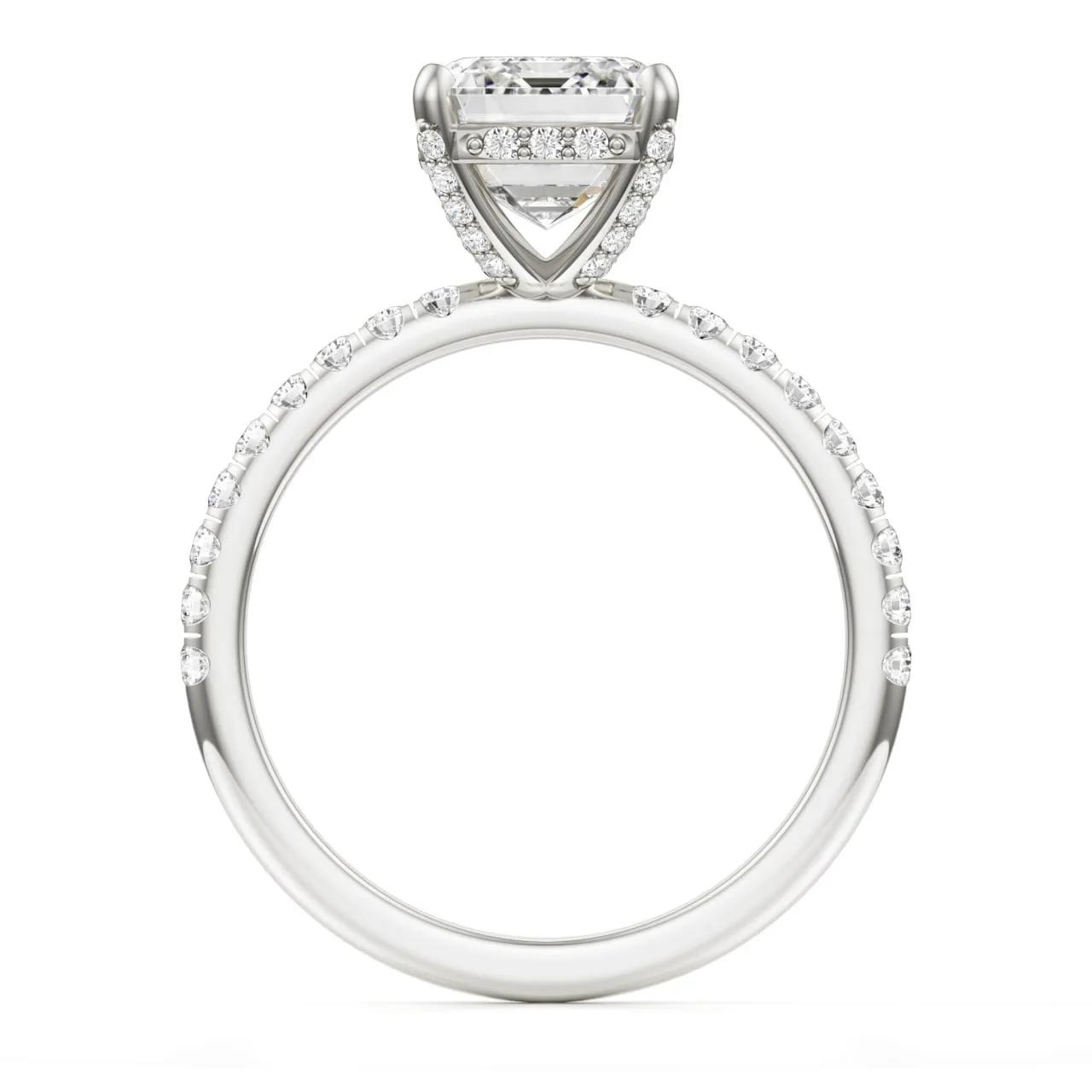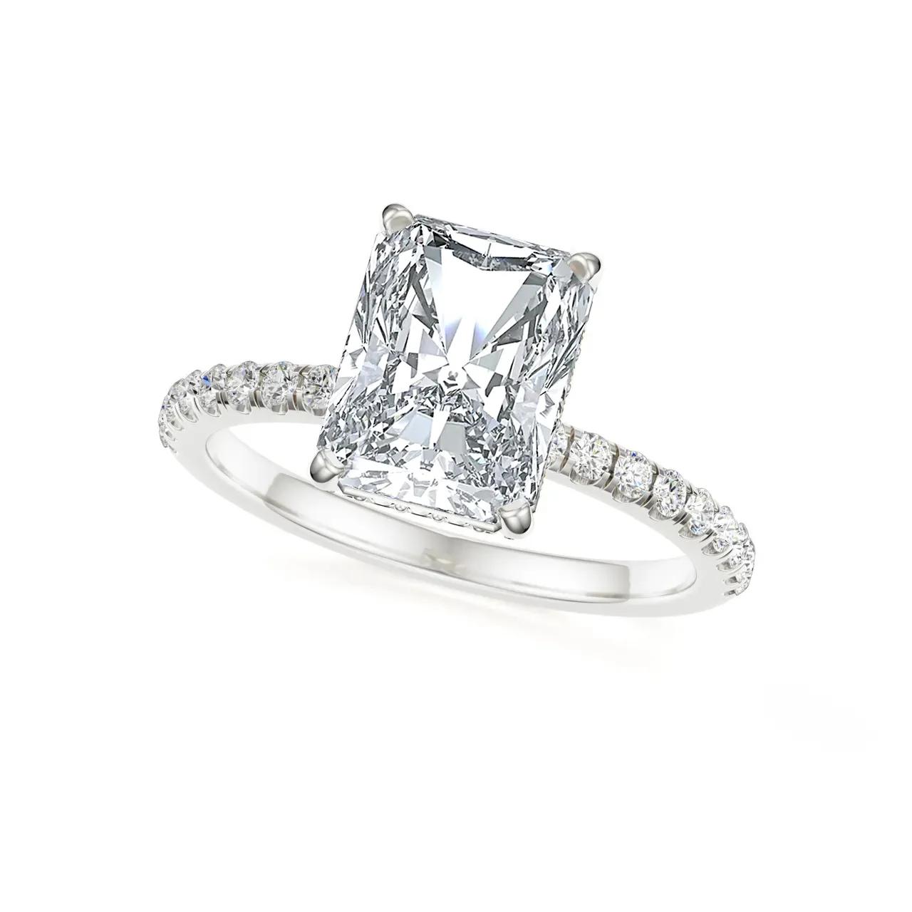 Hidden Halo & Pave Ring with 2.5 CT Radiant Cut Moissanite