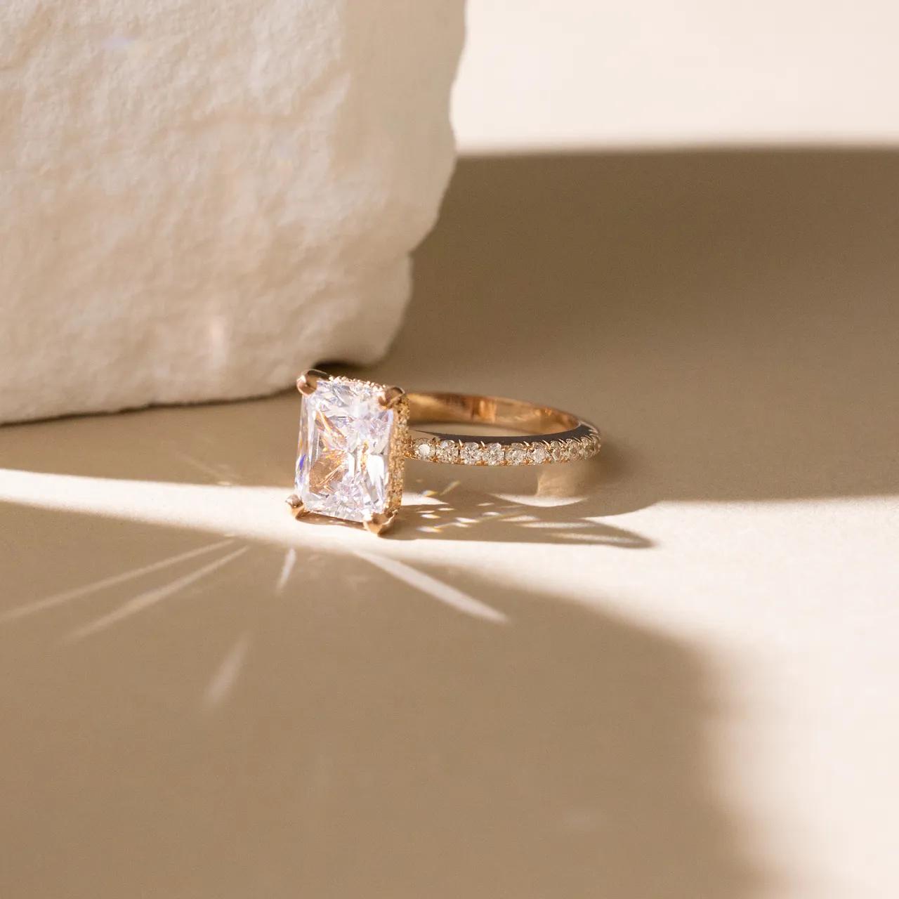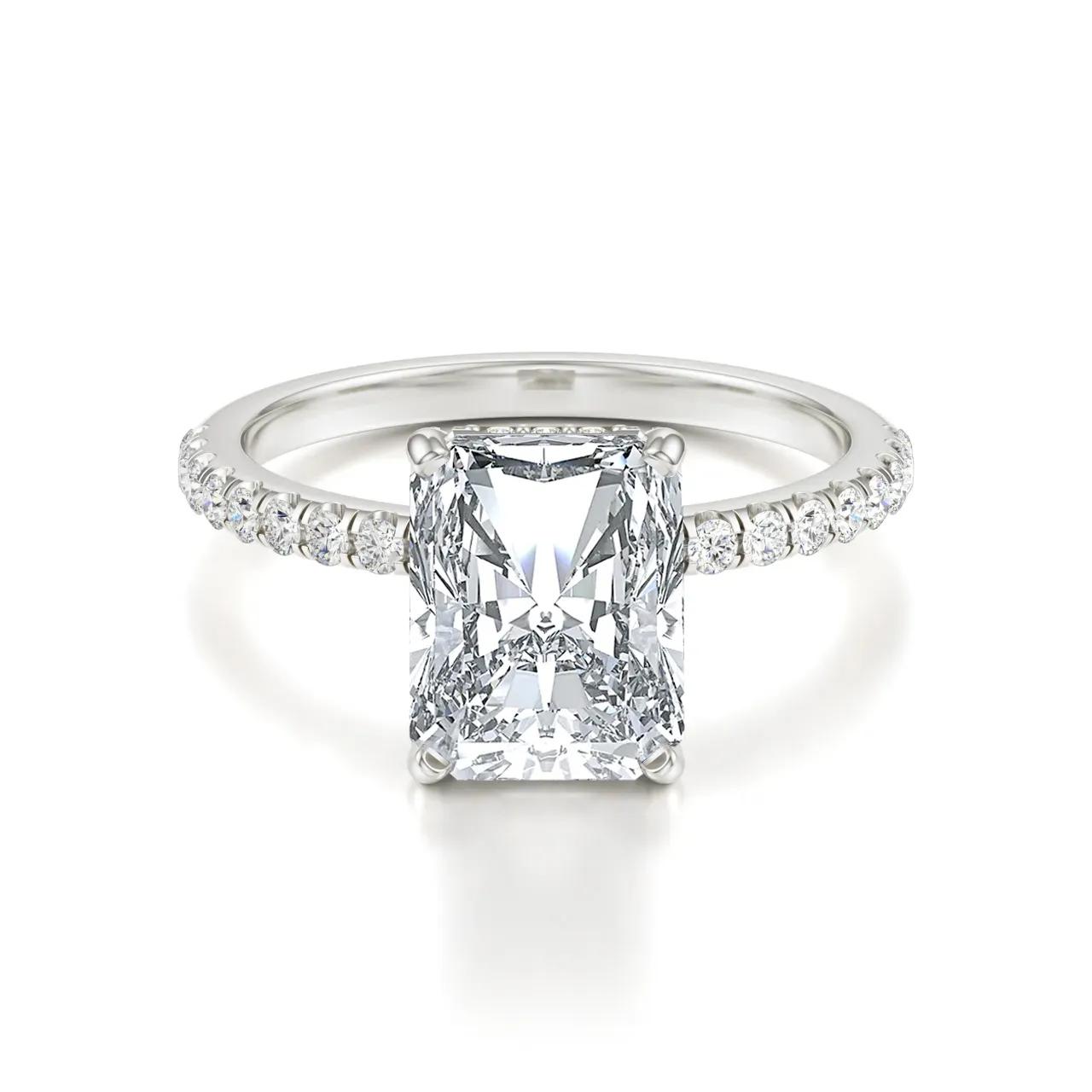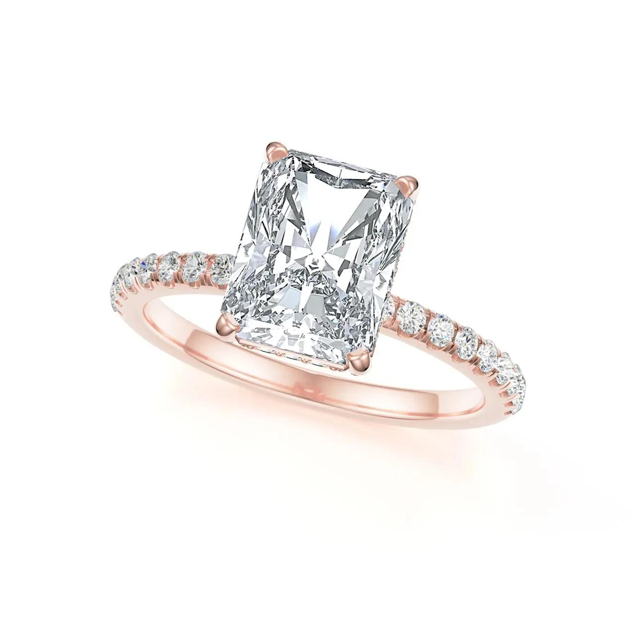 Hidden Halo & Pave Ring with 2.5 CT Radiant Cut Moissanite