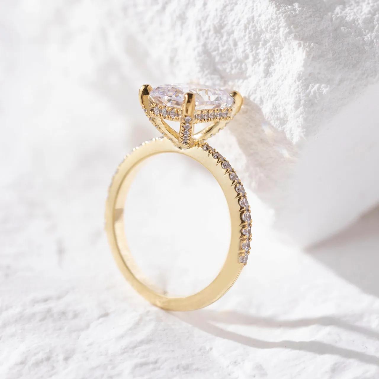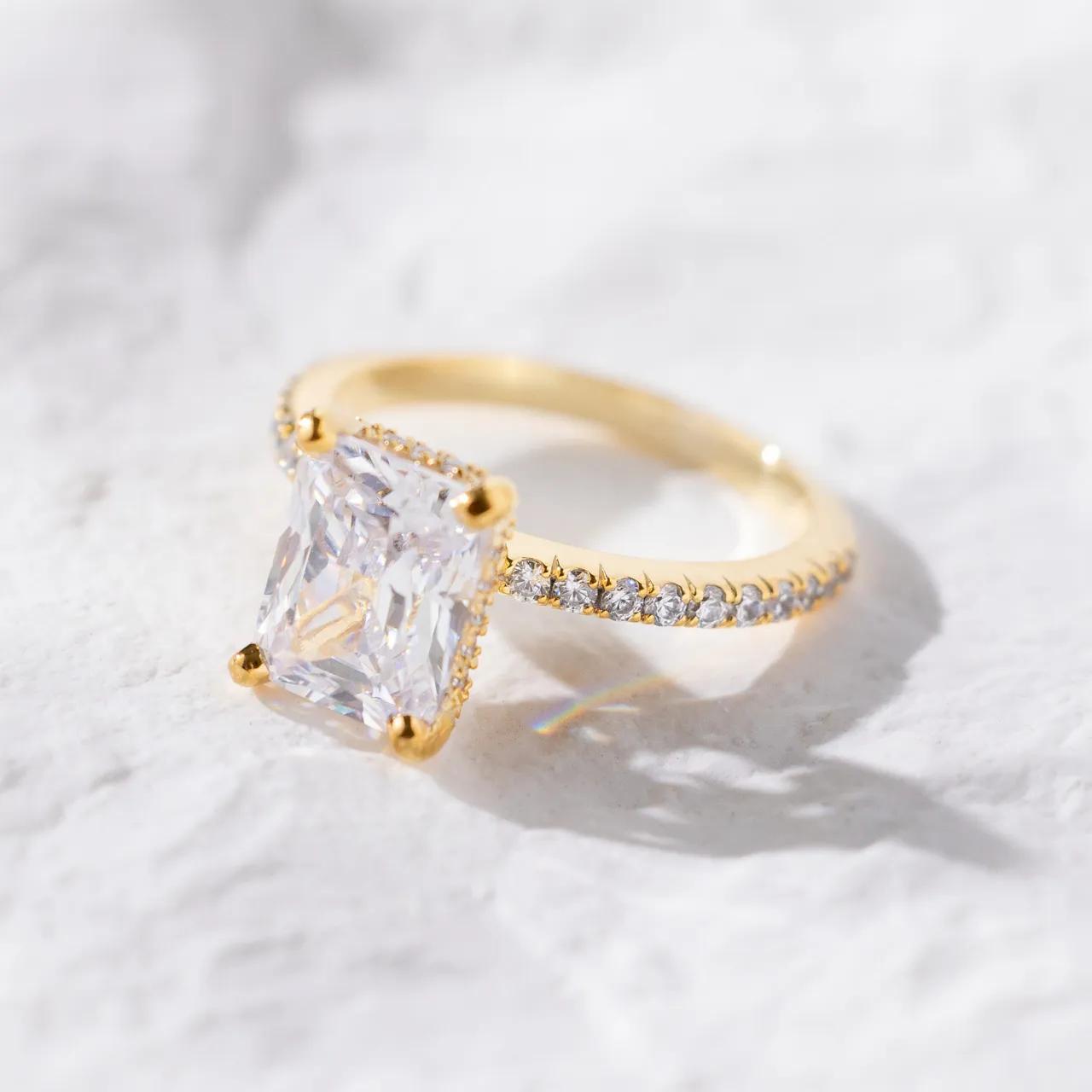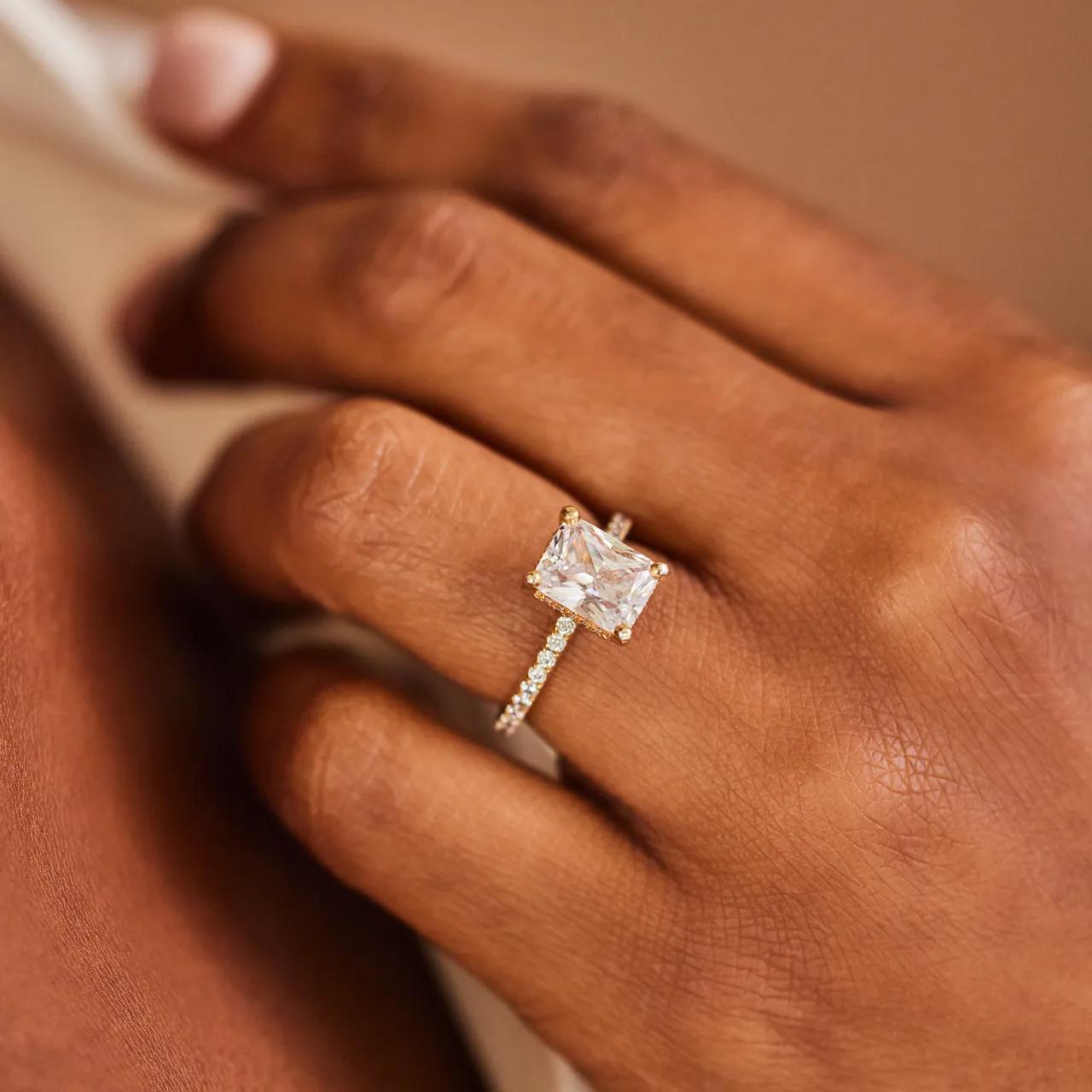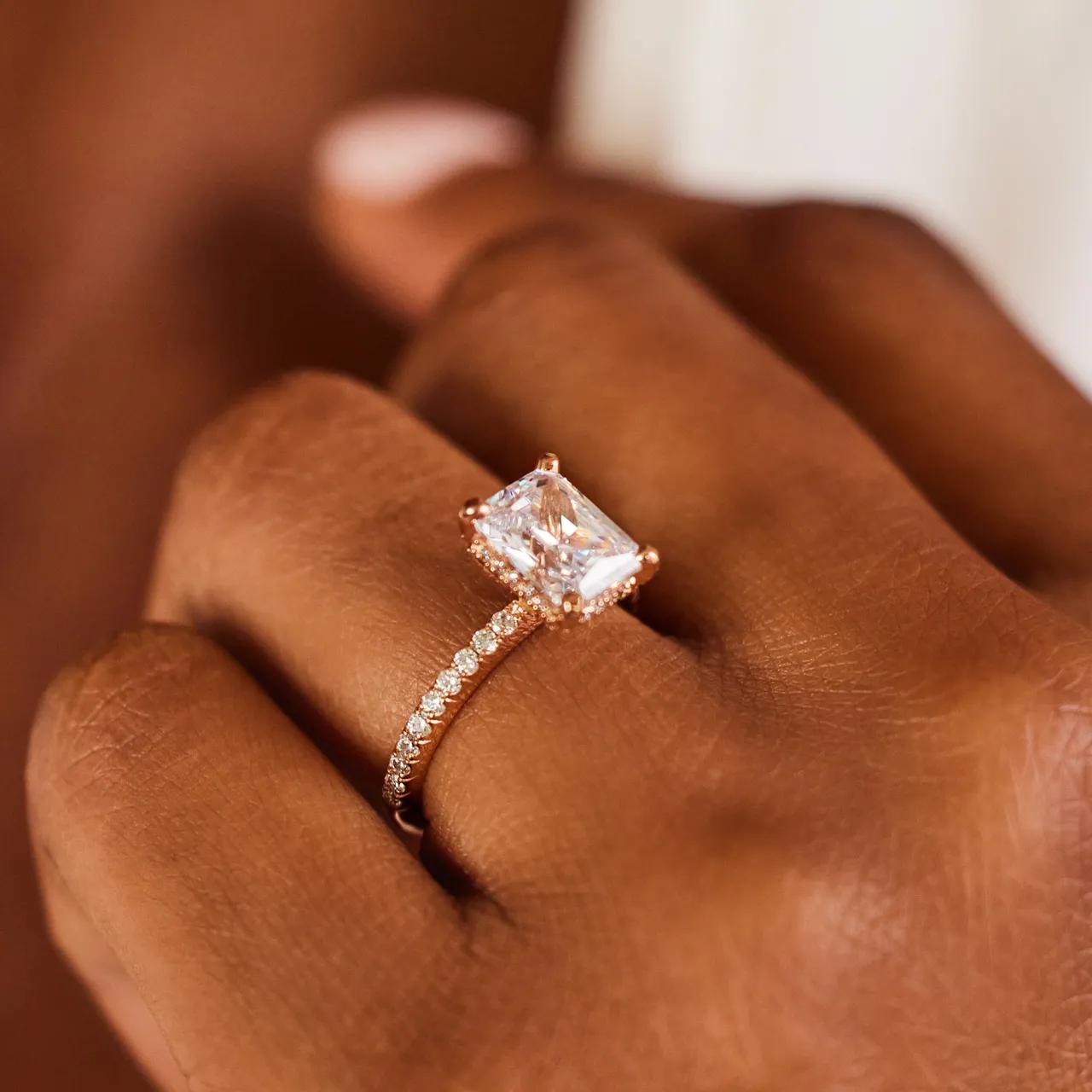 Hidden Halo & Pave Ring with 2.5 CT Radiant Cut Moissanite