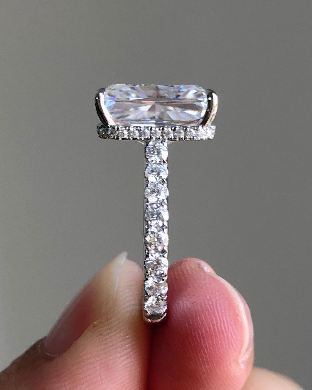 Hidden Halo Ring with 4.45 CT Radiant Cut Moissanite