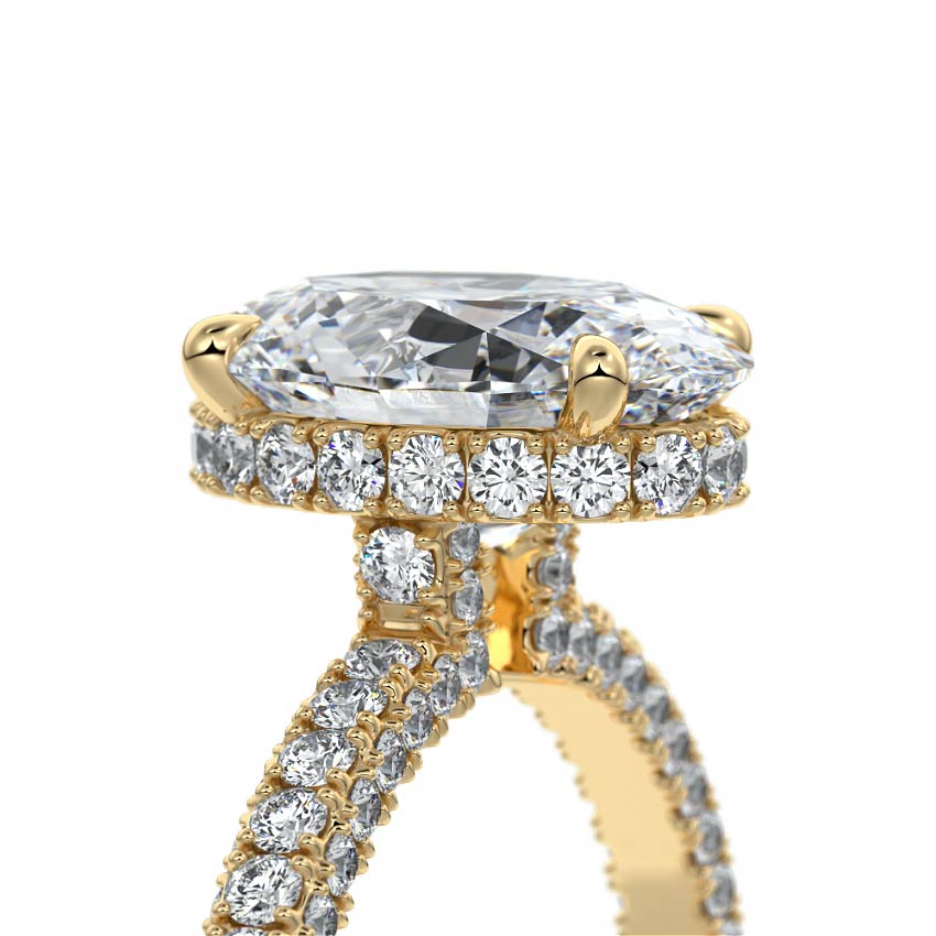 Hidden Halo & Triple Pave Ring with 1.50 CT Oval Cut Moissanite