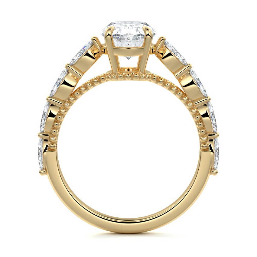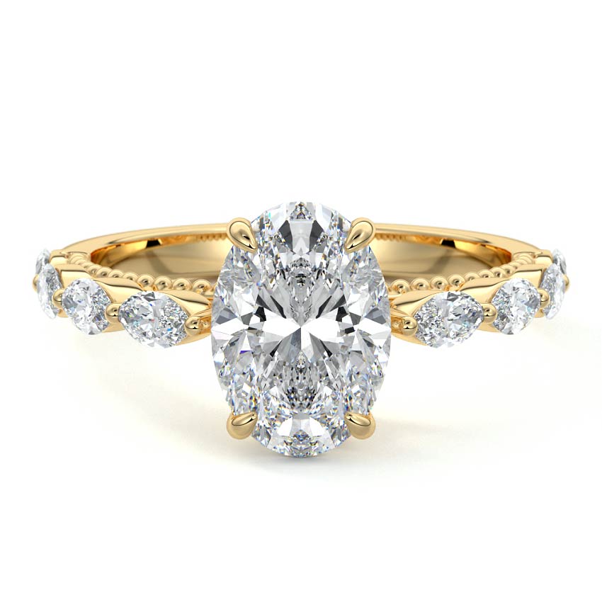 Milgrain Pave Ring with 1.0 CT Oval Cut Moissanite