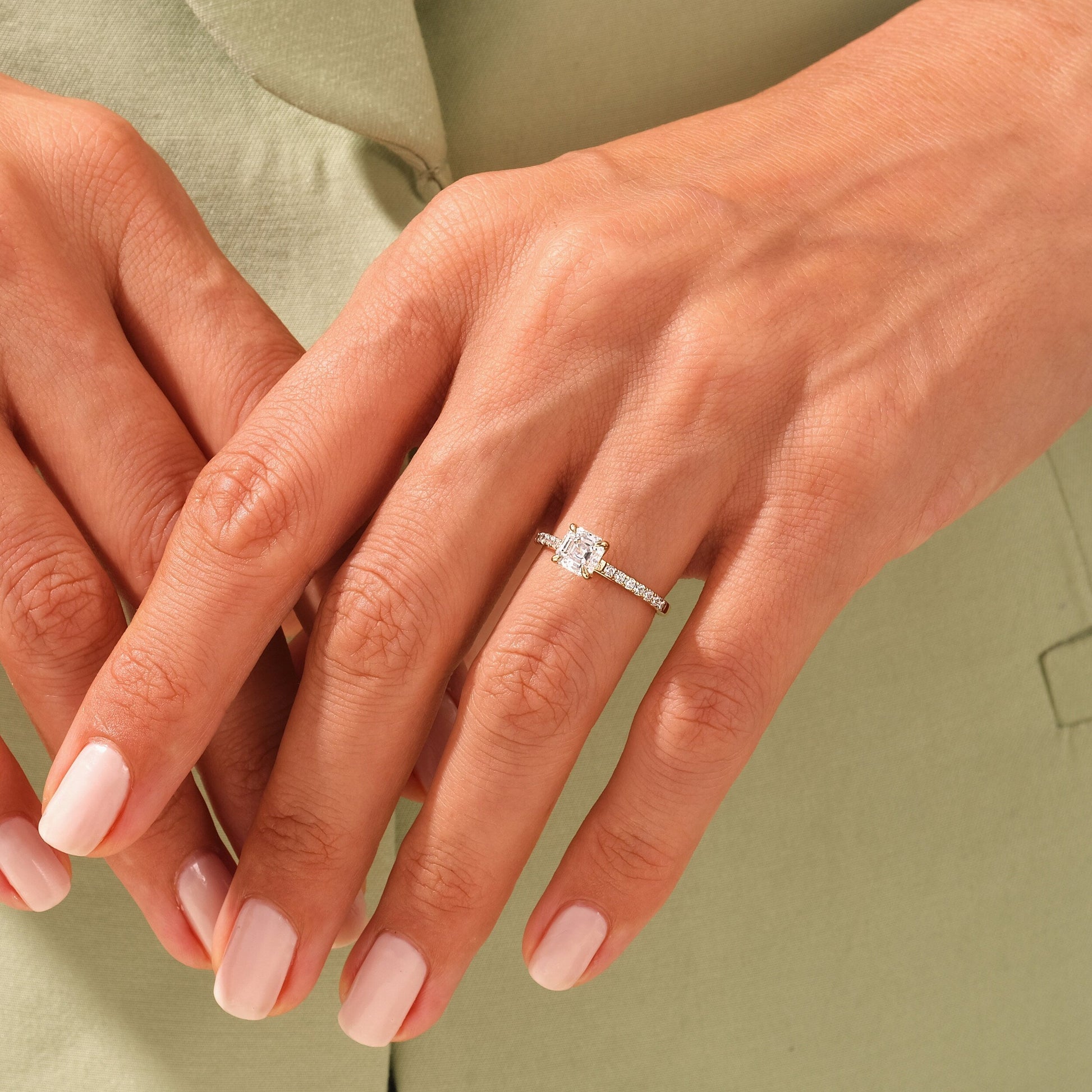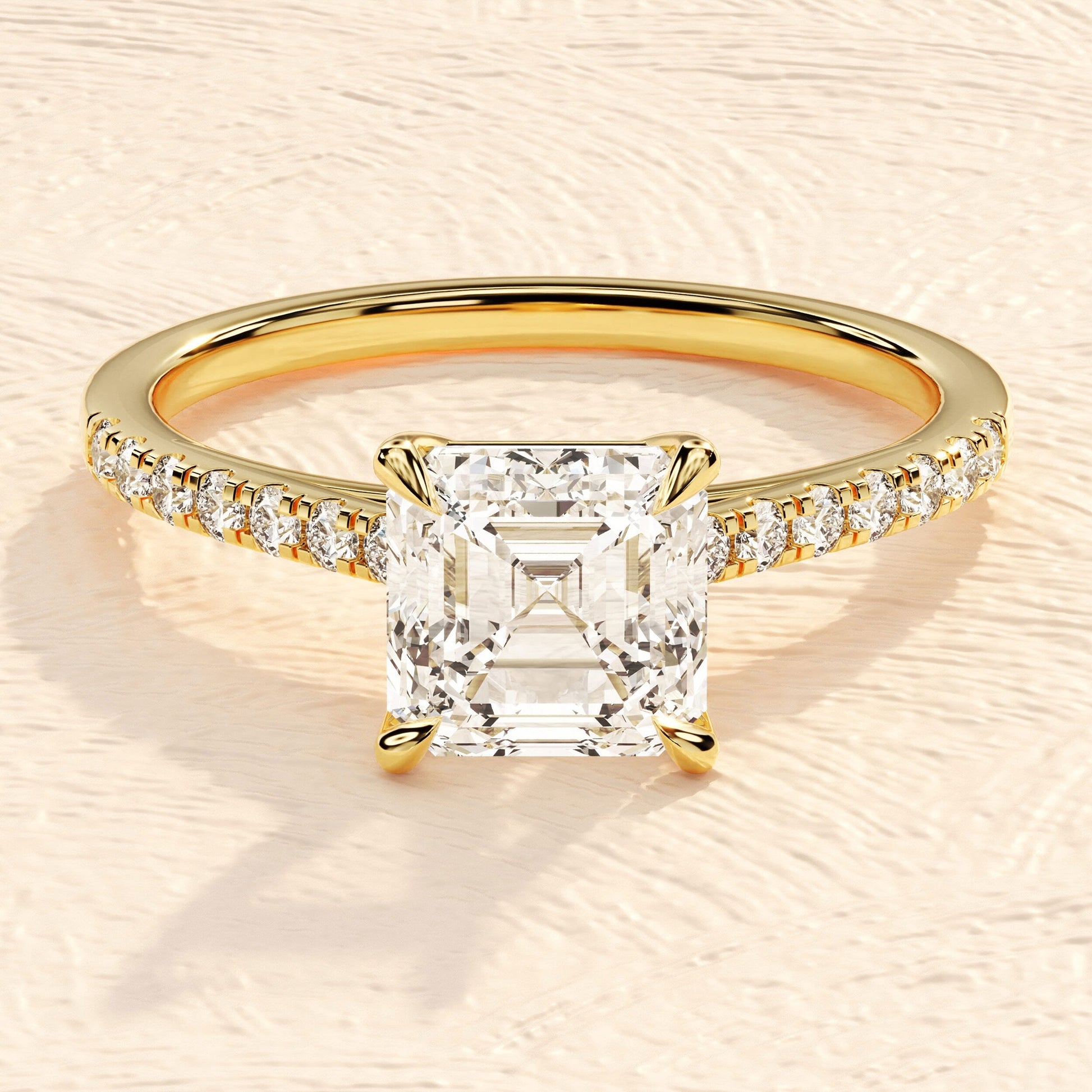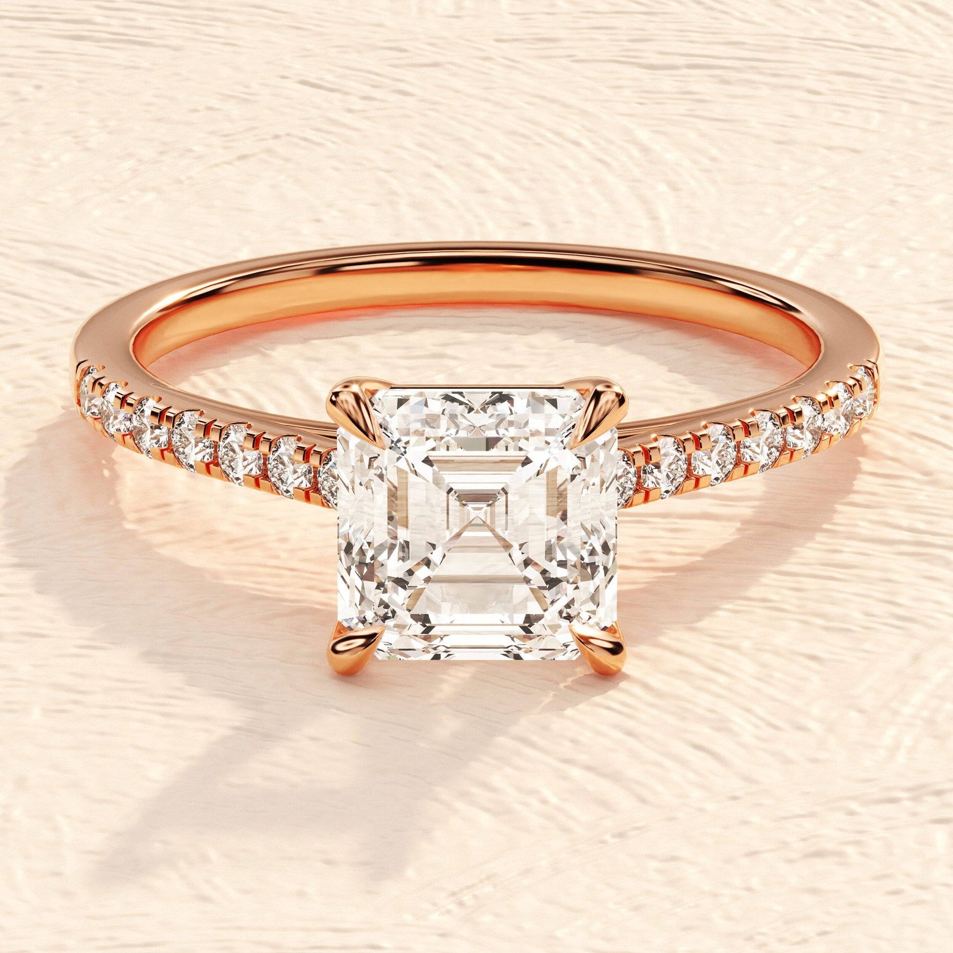 Pave Setting Ring with 1.0 CT Asscher Moissanite