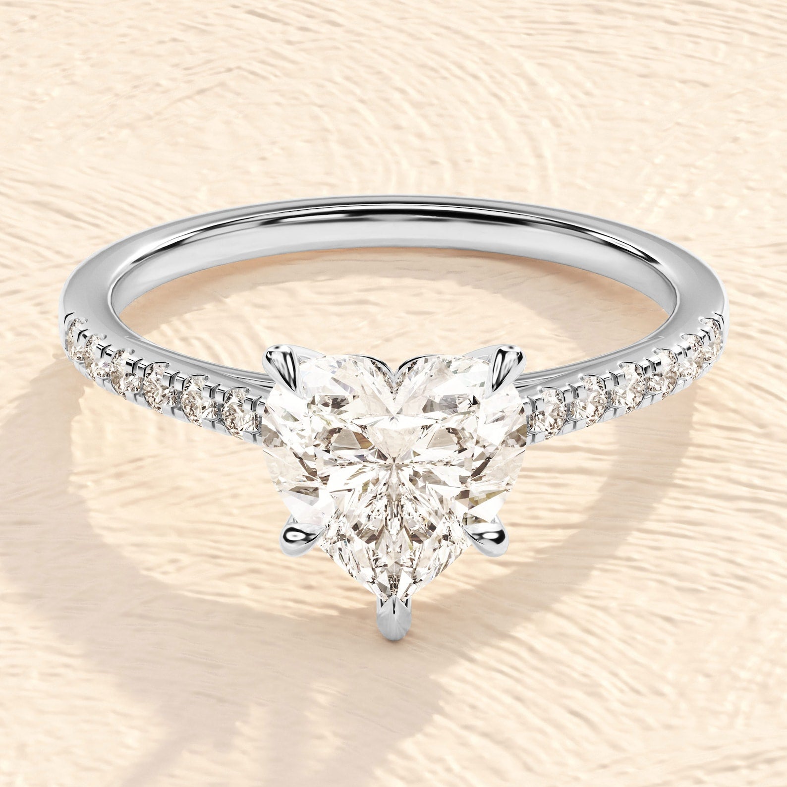 Pave Setting Ring with 1.50 CT Heart Moissanite
