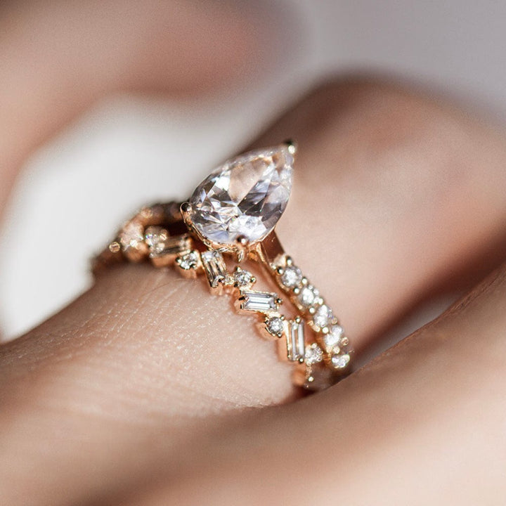 Pave Setting Ring with 1.50 CT Pear Moissanite