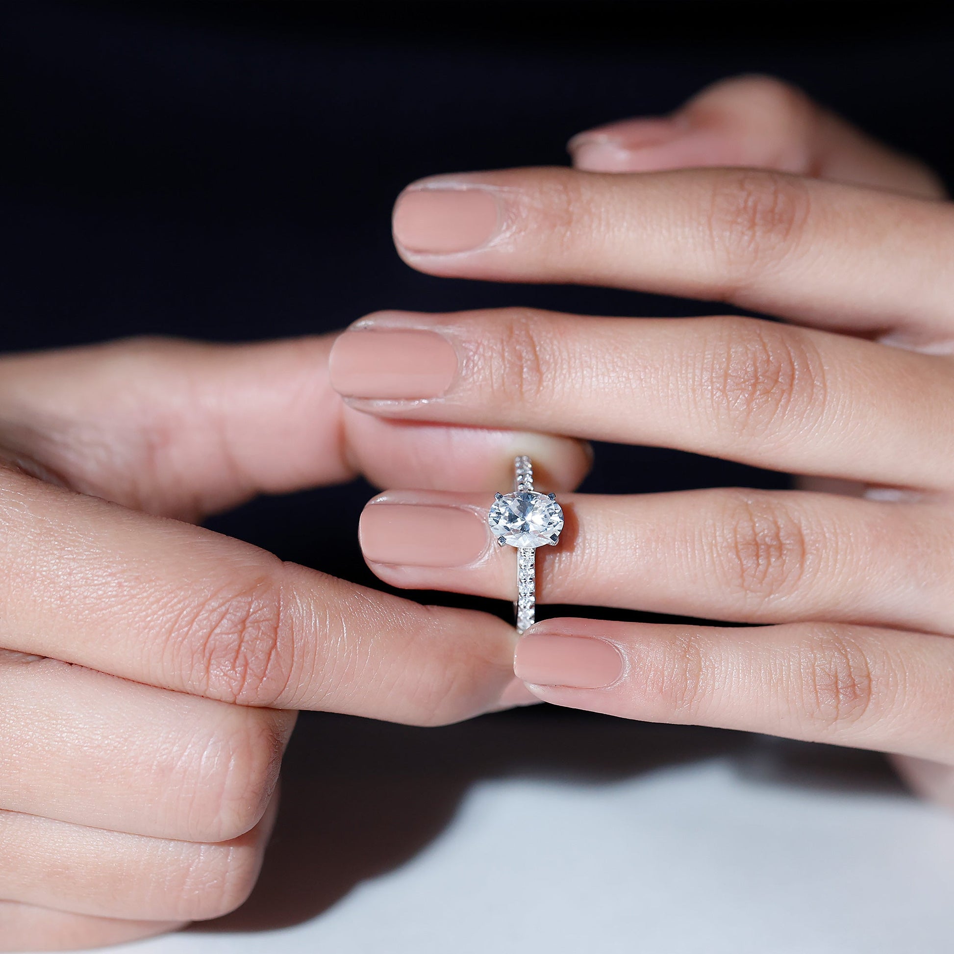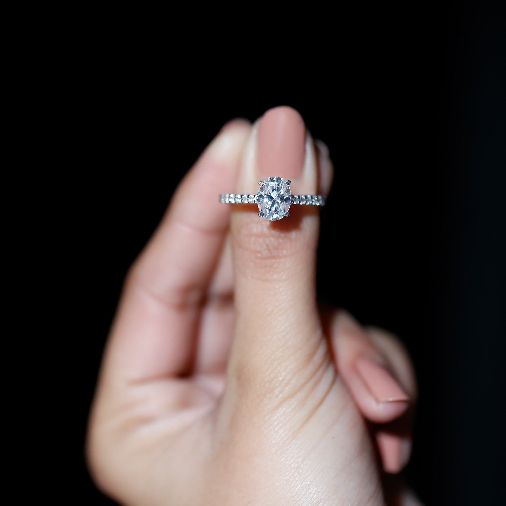 Pave Setting Ring with 1.70 CT Oval Cut Moissanite