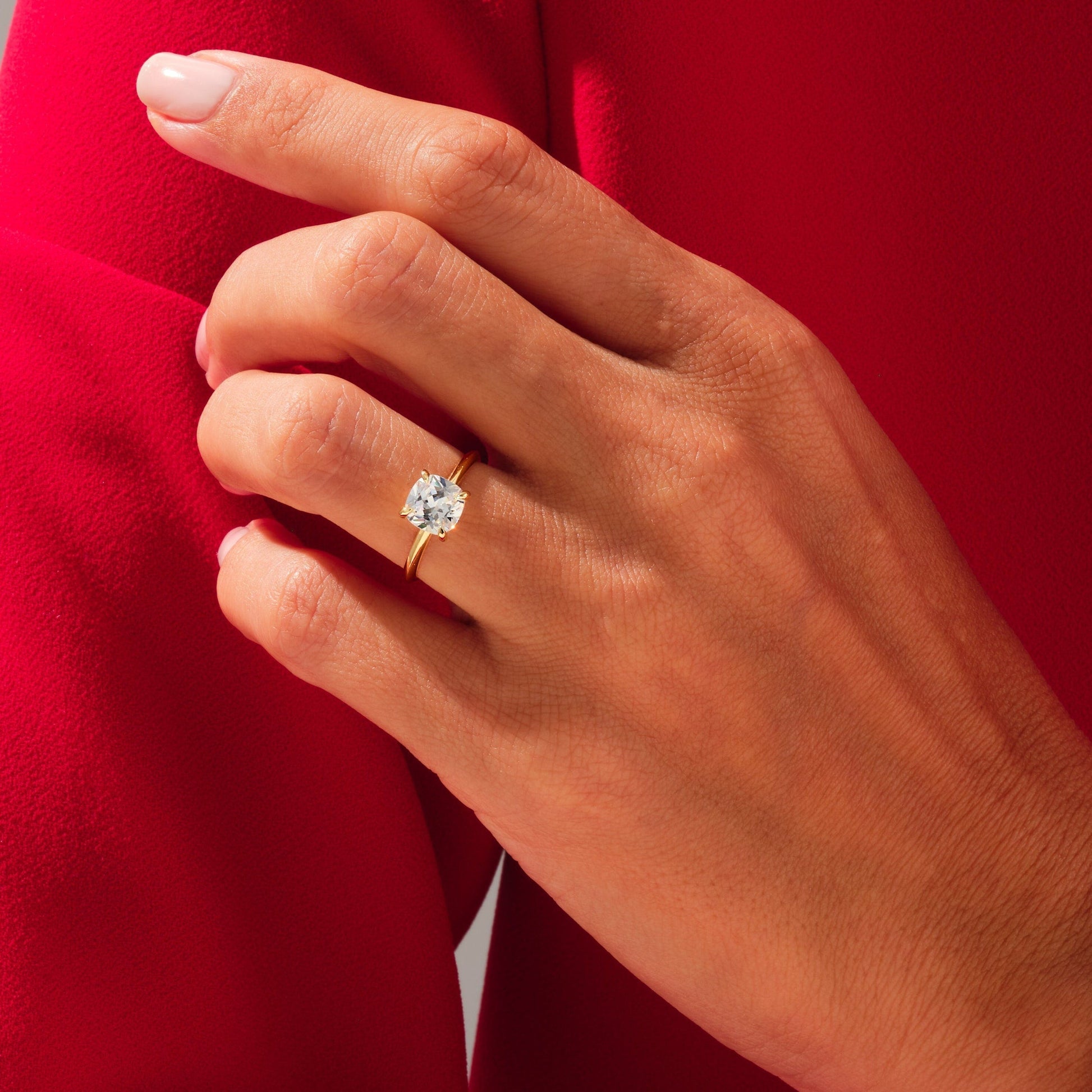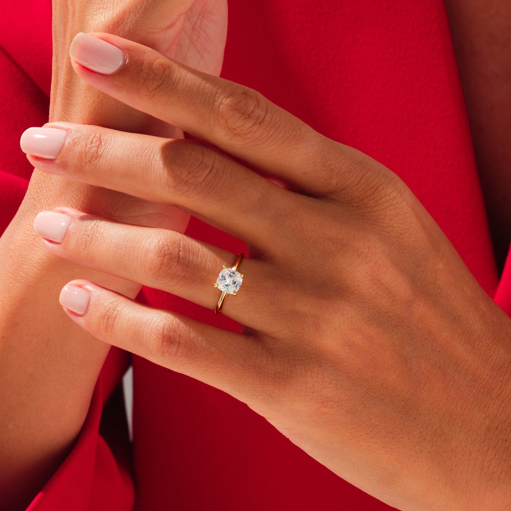 Solitaire Ring with 1.50 CT Cushion Moissanite