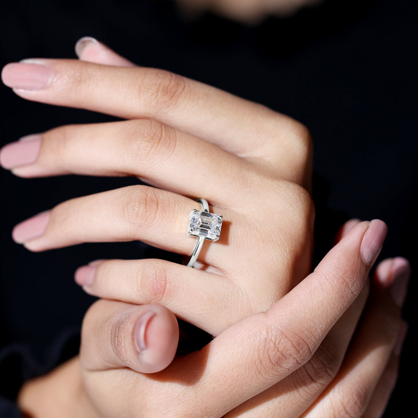 Solitaire Ring with 2.0 CT Emerald Cut Moissanite