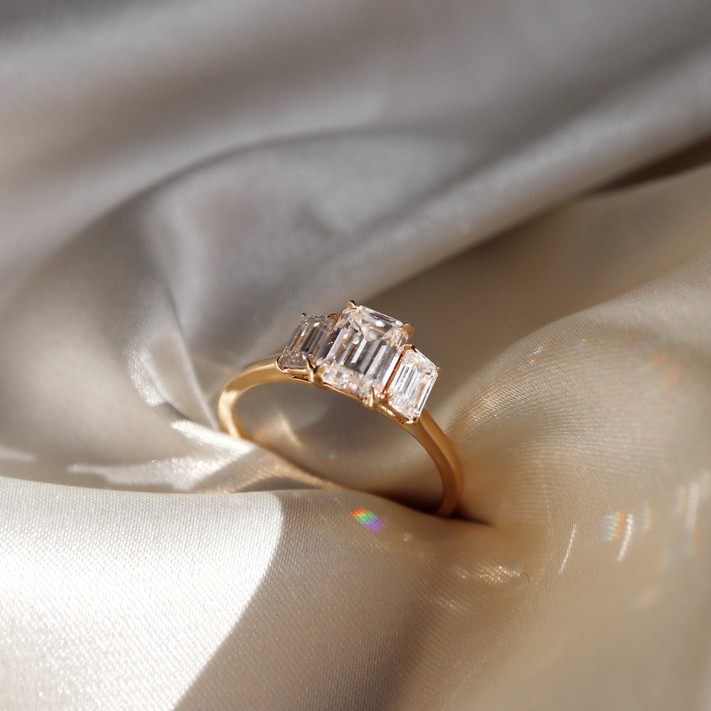 Three Stone Ring with 1.0 CT Emerald Moissanite