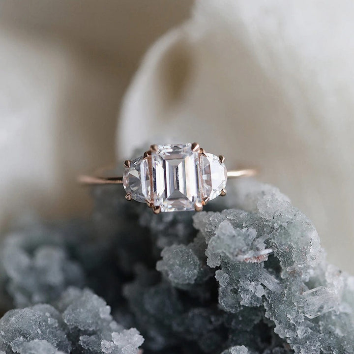 Three Stone Ring with 2.0 CT Emerald Moissanite